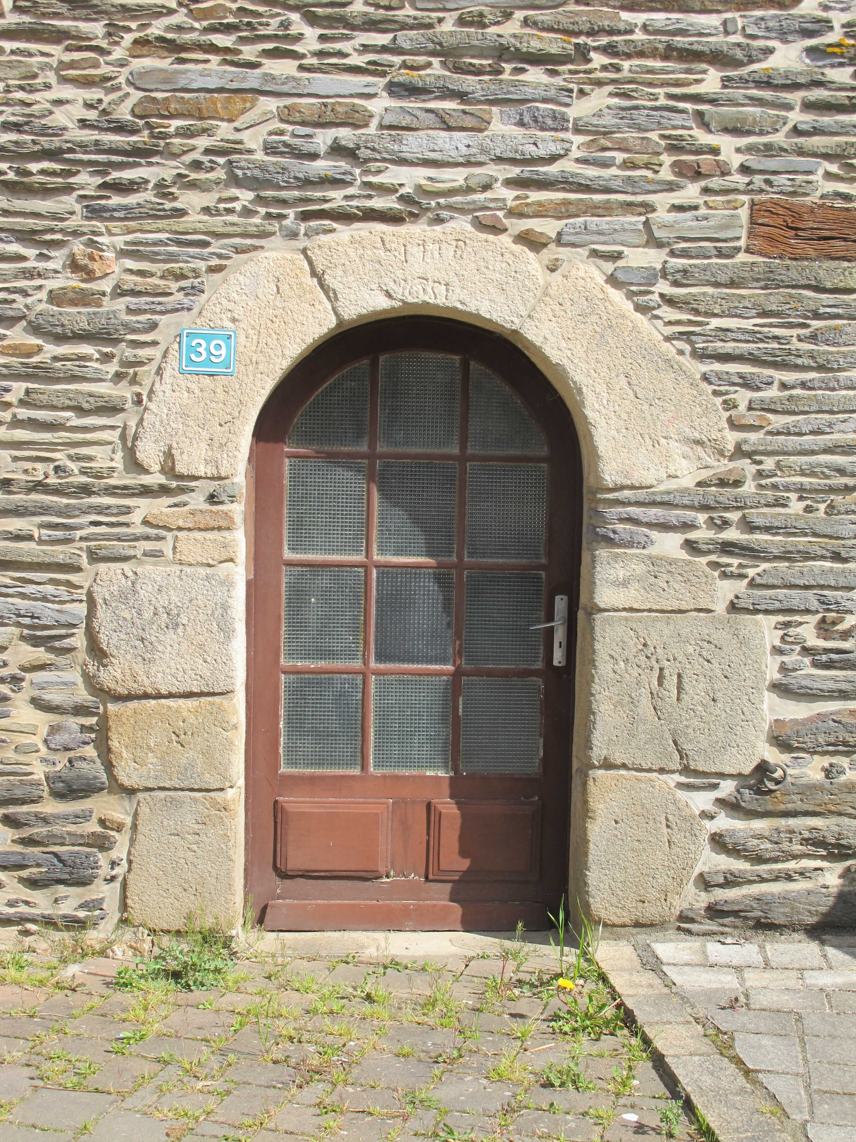 39, avenue de la Libération, maison : la porte du logis en granite dont la hauteur a été rehaussée par des moellons de schiste (état en 2013)Immatriculation