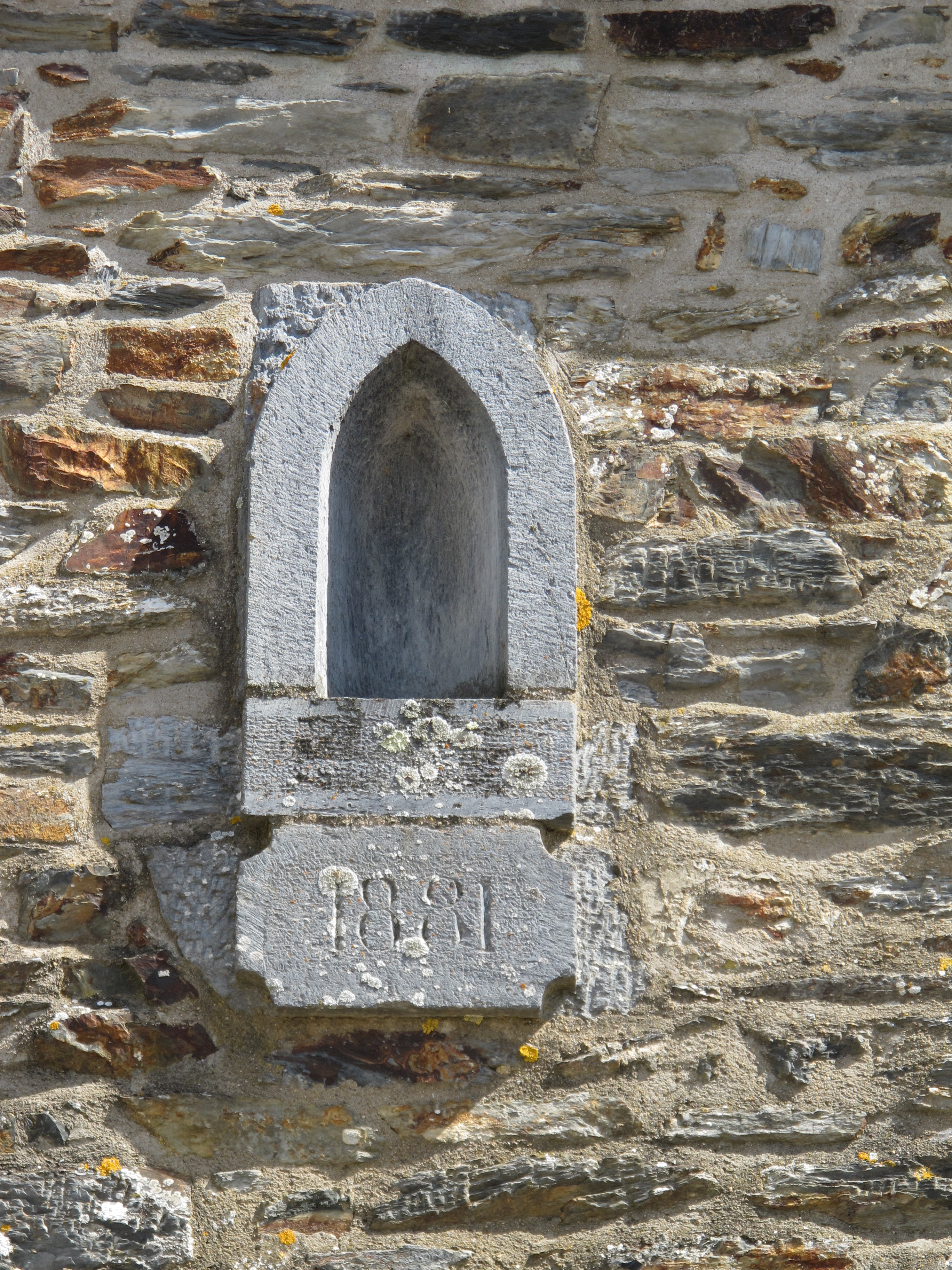 5, Place de la Motte, maison aujourd'hui bureau de poste : niche à statuette portant la date 1881 (état en 2013)Immatriculation