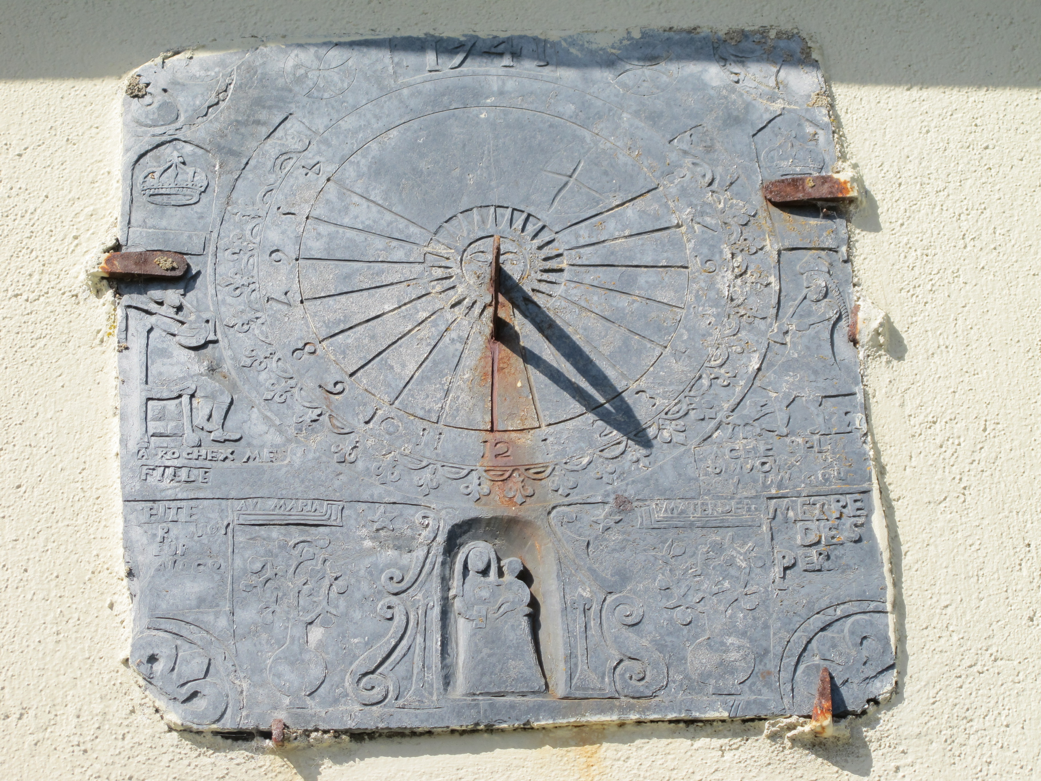 Cadran solaire daté de 1741 (état en 2013)Immatriculation