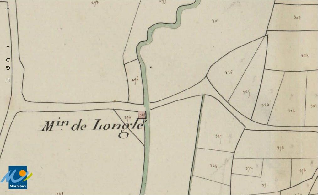 Le moulin à eau de Longlé sur le cadastre de 1829 (A. D. du Morbihan, 3 P 270/4)Immatriculation