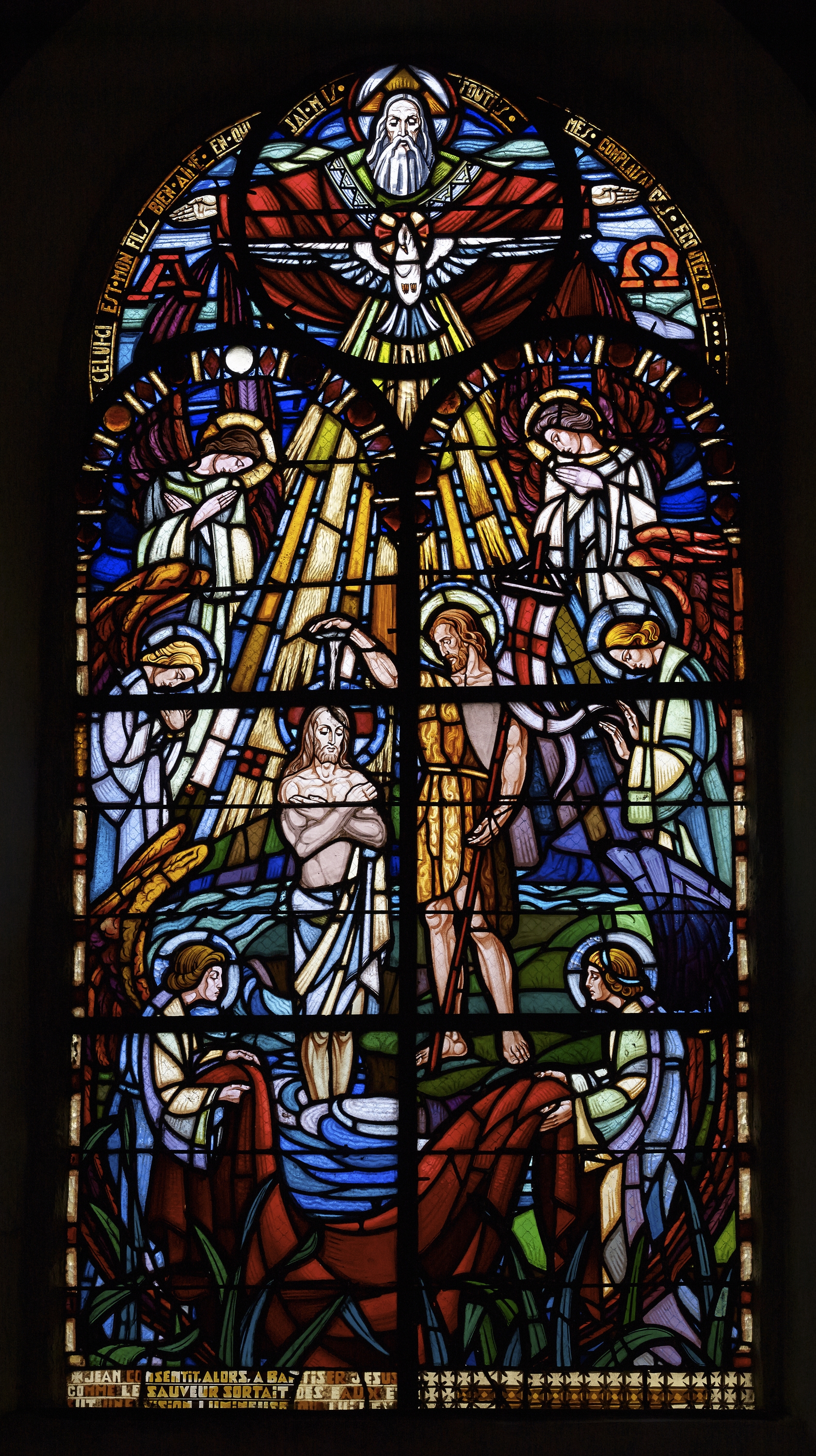 Verrière, vue générale : " Jean consentit alors a baptiser Jésus ..."Immatriculation