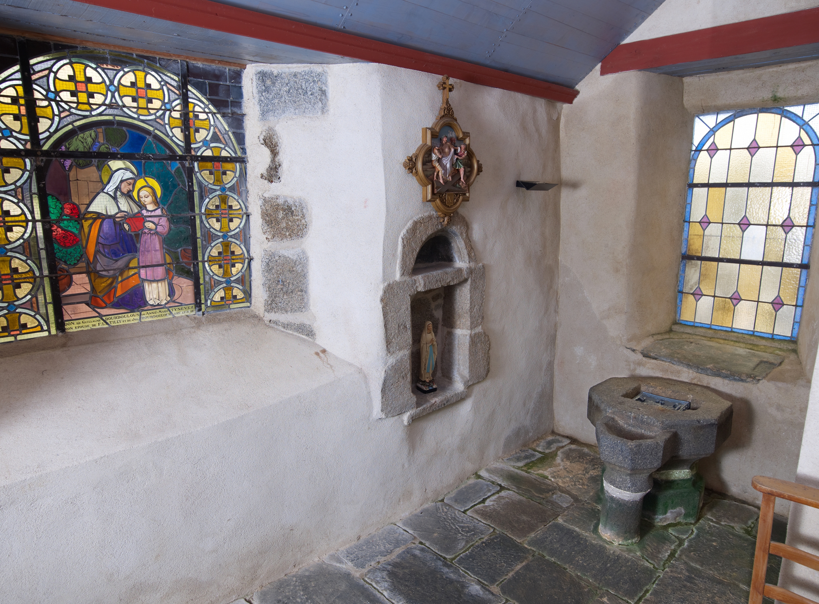 Mantallot, le bourg : église paroissiale Saint Médéric, vue intérieure, fonts baptismauxImmatriculation