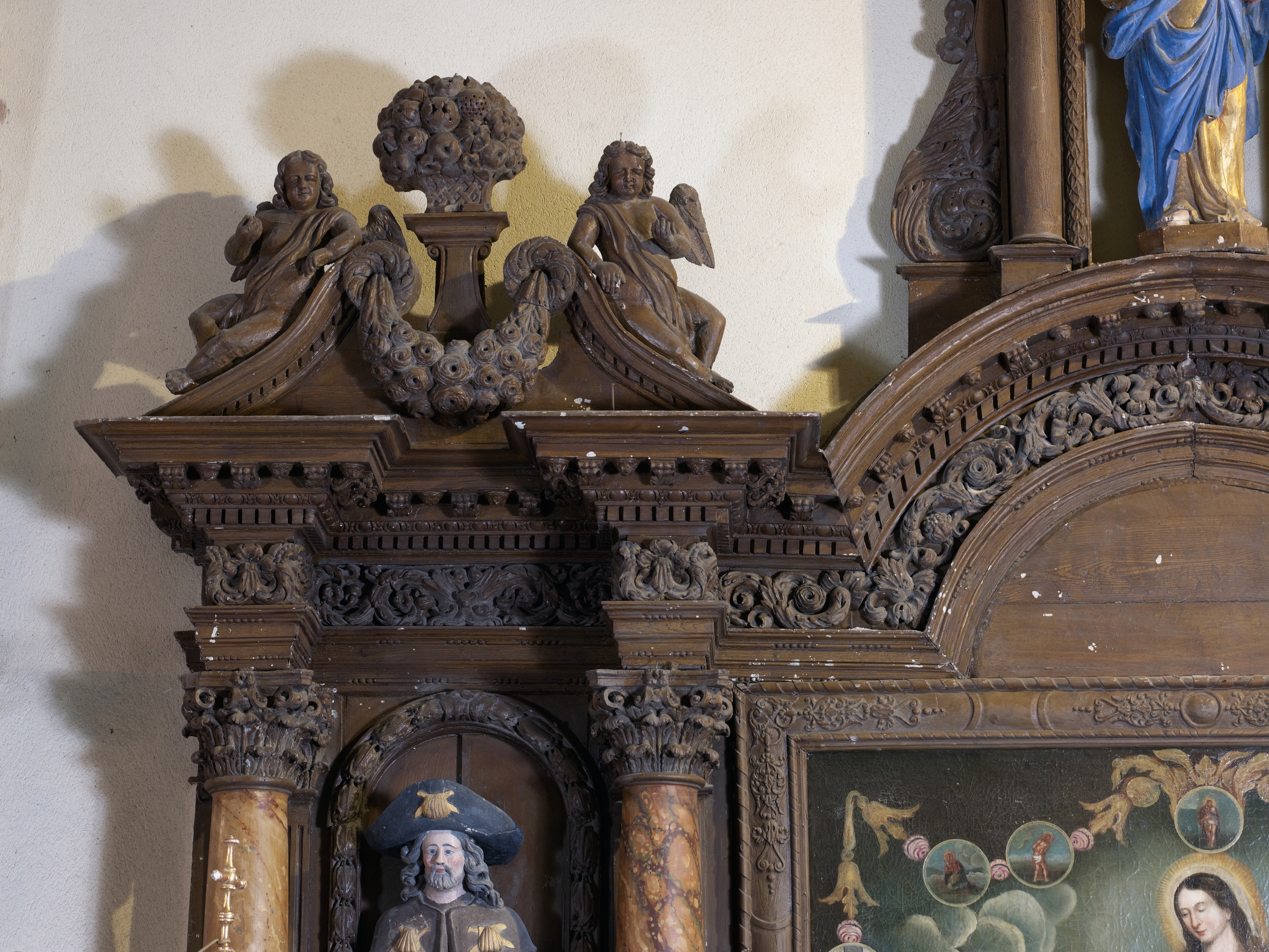 Ploubezre : église paroissiale, vue intérieure, détail du retable sudImmatriculation