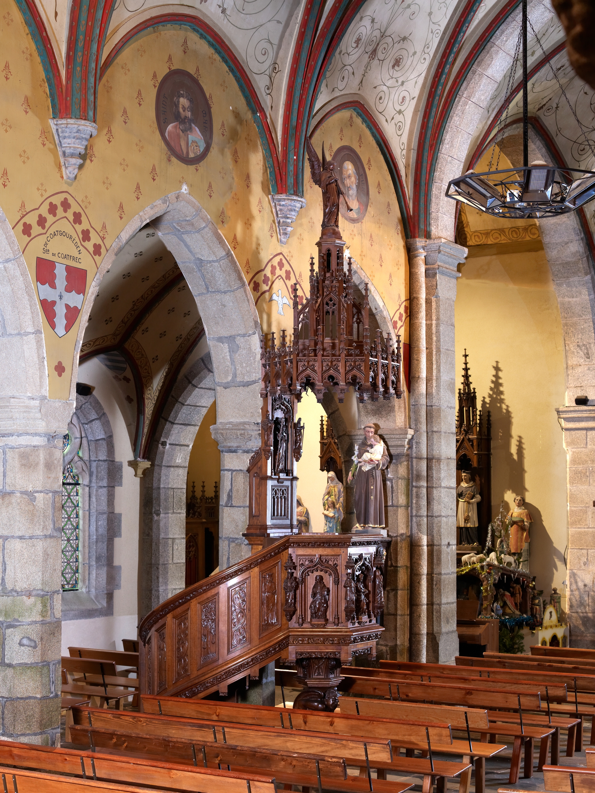 Ploubezre : église paroissiale, vue intérieure, chaire à prêcher datée de 1902Immatriculation