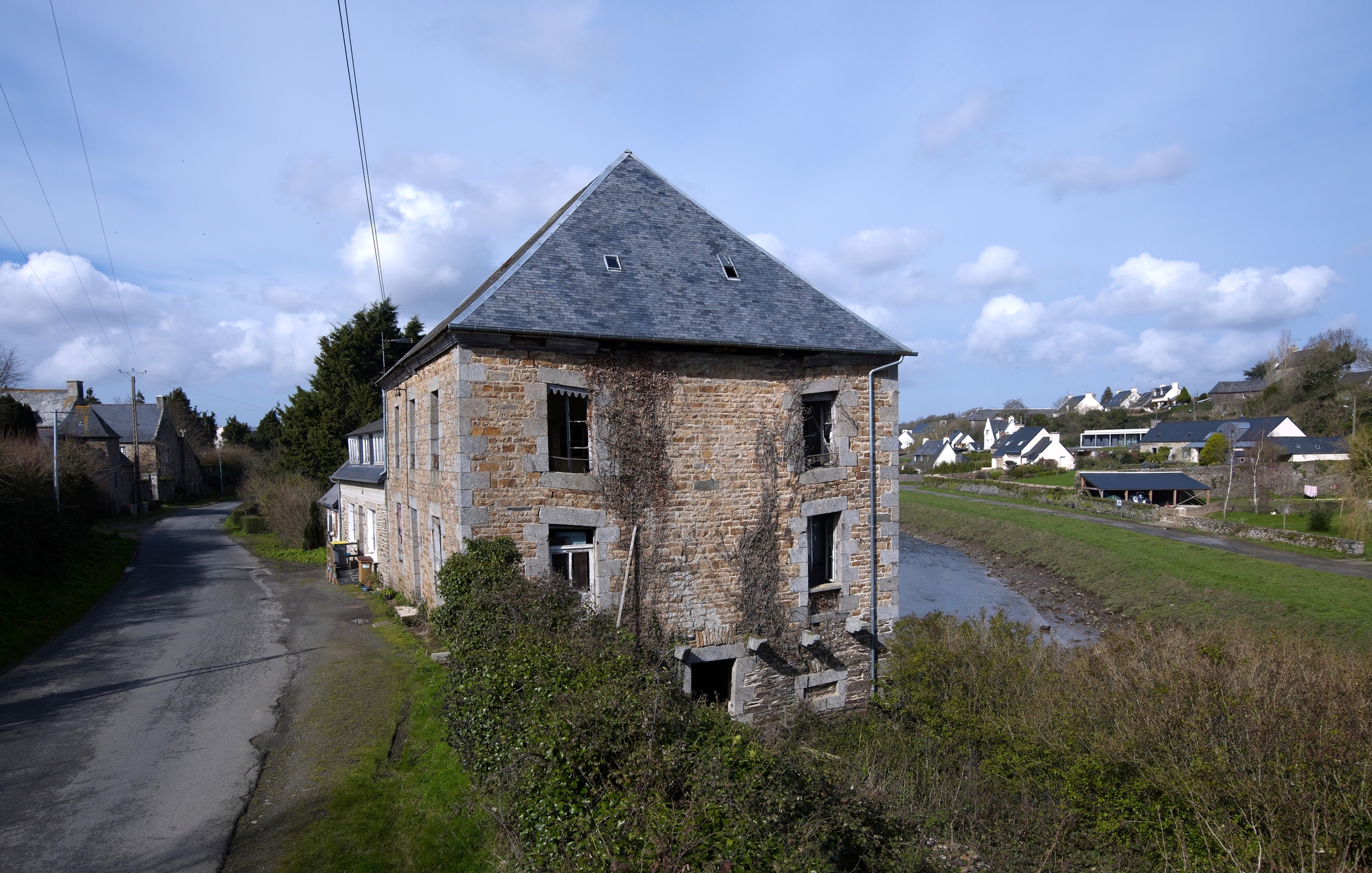 Langoat, au nord-ouest de l'écart de Saint Yves / Chef du Pont : maison de négociant en vin. L'édifice est datable de la 2e moitié du 19e siècle ; en mauvais état, il est désaffectéImmatriculation