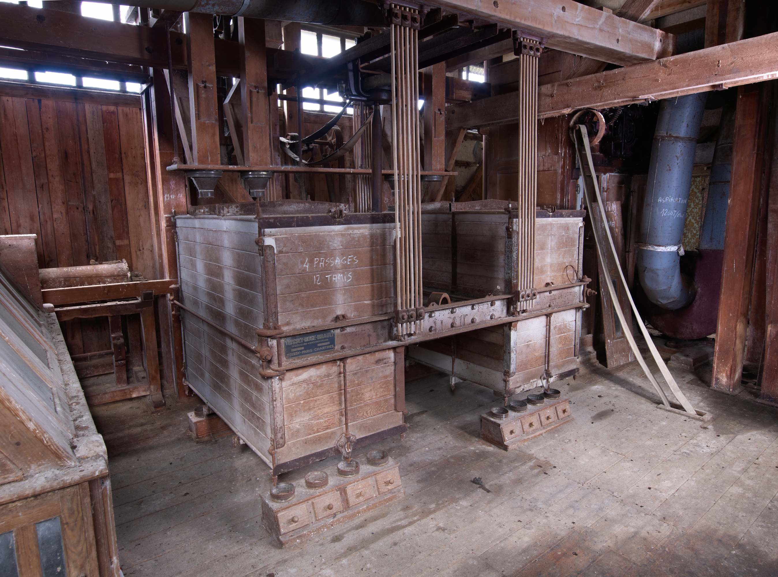 Corps central du moulin. Troisième étage. Plansichter "TEISSET ROSE ET BRAULT" pour le blutage ou le tamisage après le broyage du bléImmatriculation