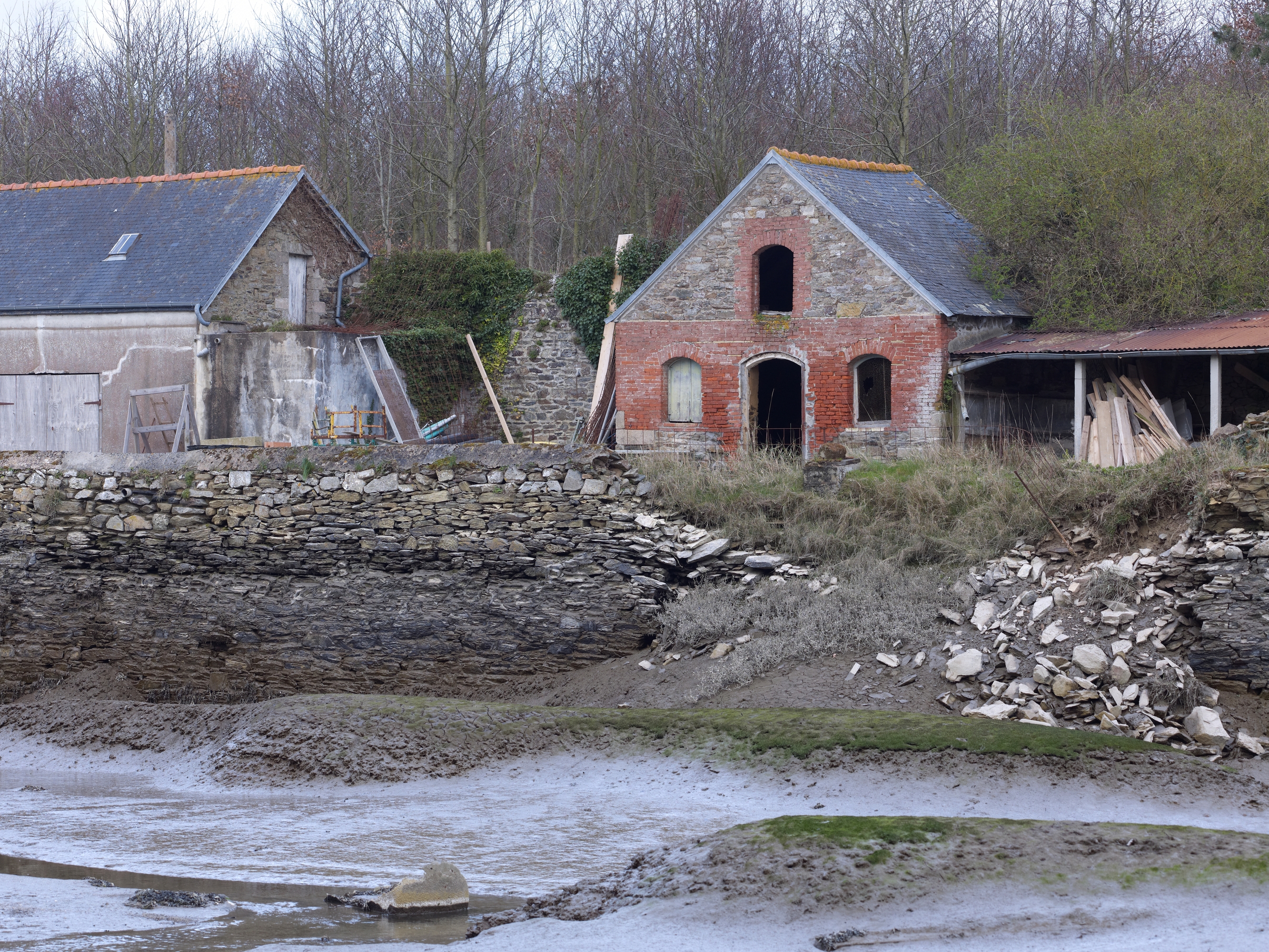 Mur de soutènement de la rive de l'étang et ancienne écurie. Vue générale ouestImmatriculation