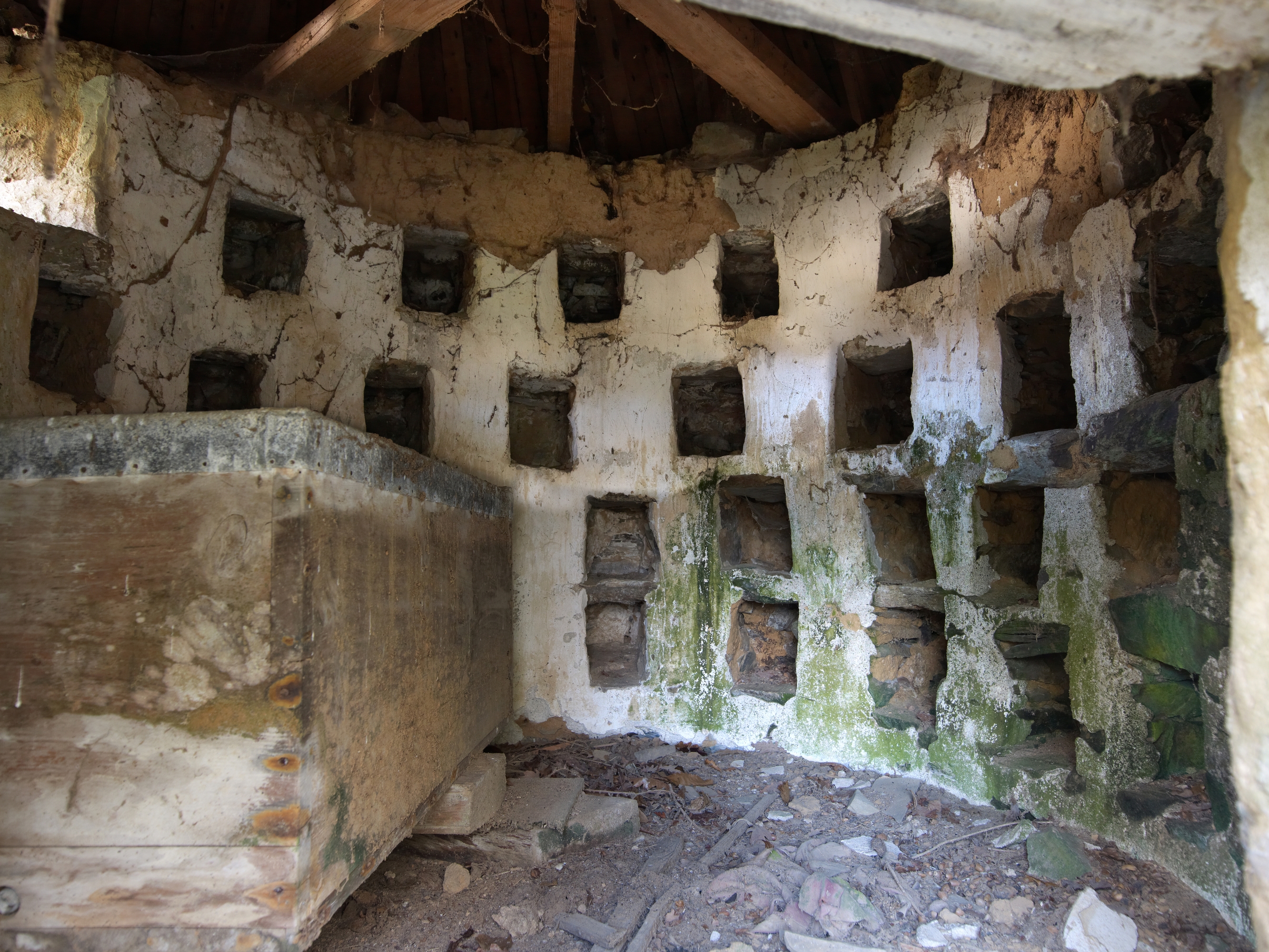 Pigeonnier. Intérieur. Détail des trous de boulinImmatriculation