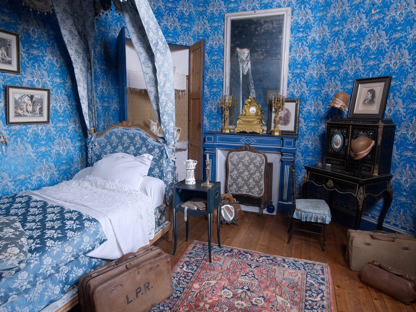 Ploubezre : château de Kergrist, vue intérieure, partie est, étage, "chambre bleue" et sa collection d'objets anciensImmatriculation