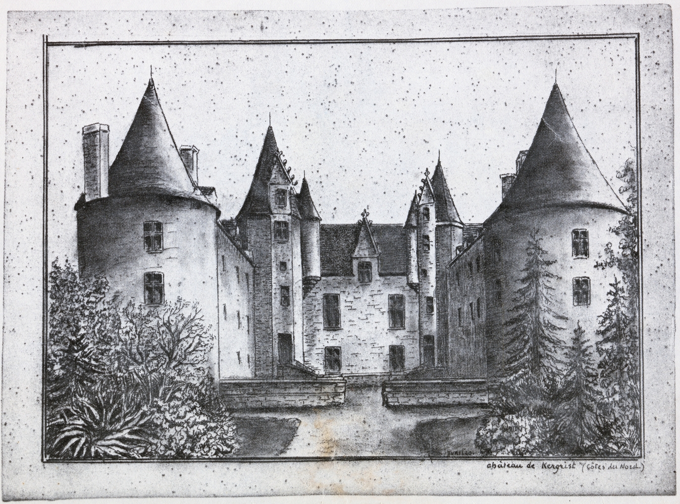 Ploubezre : château de Kergrist, vue générale des façades nord et de la cour (collection Régis Huon de Penanster)Immatriculation