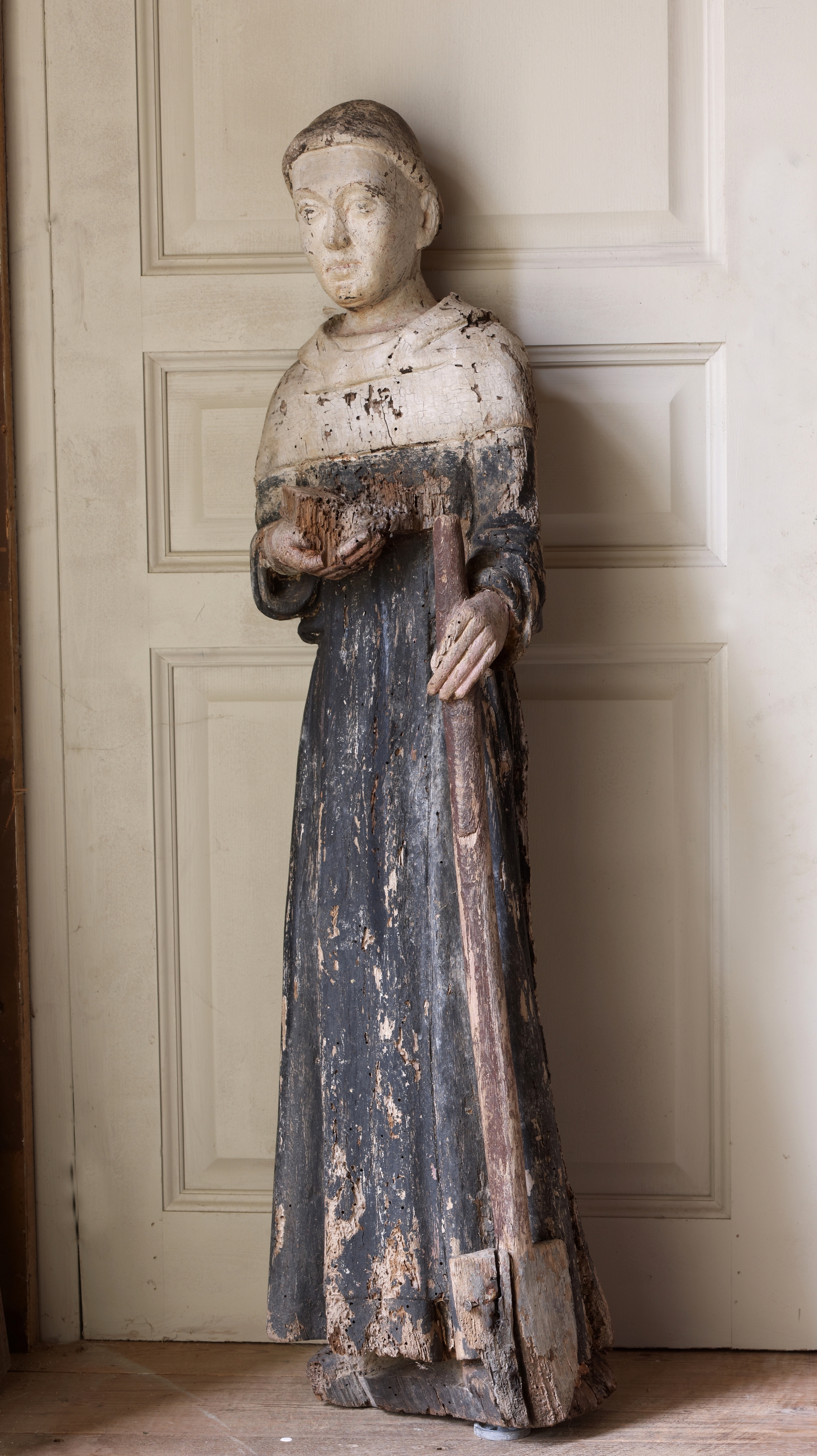 Ploubezre : statue de saint Fiacre. Patron des jardiniers, ses attributs sont la pelle et le missel (Collection Huon de Penanster)Immatriculation