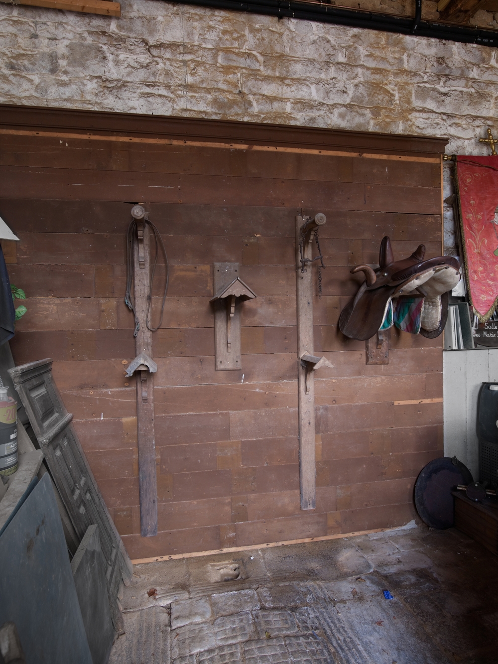 Ploubezre : dépendance du château de Kergrist, écurie située à l'extrémité est, vue intérieureImmatriculation