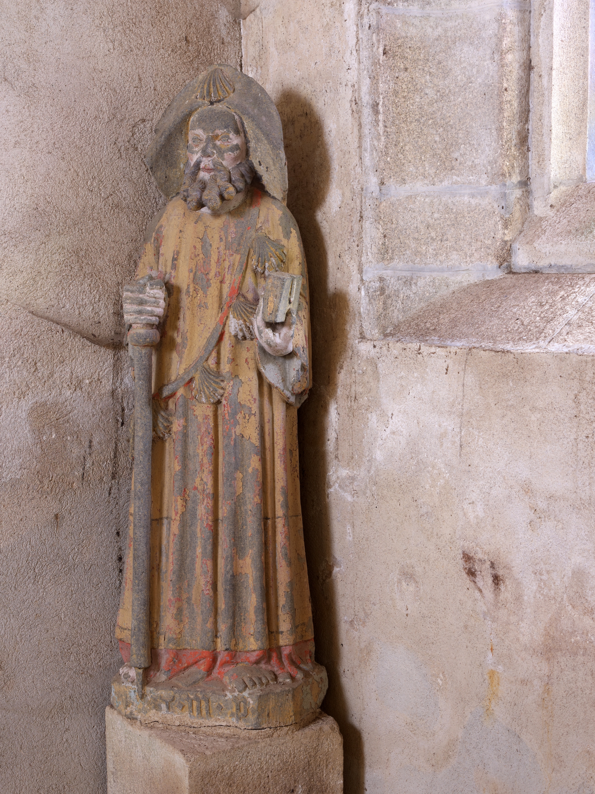Ploubezre, Runfao : chapelle Saint-Fiacre, statue de saint Jacques. Cette statue est vraisemblablement datable du 15e siècle ou du début du 16e siècleImmatriculation