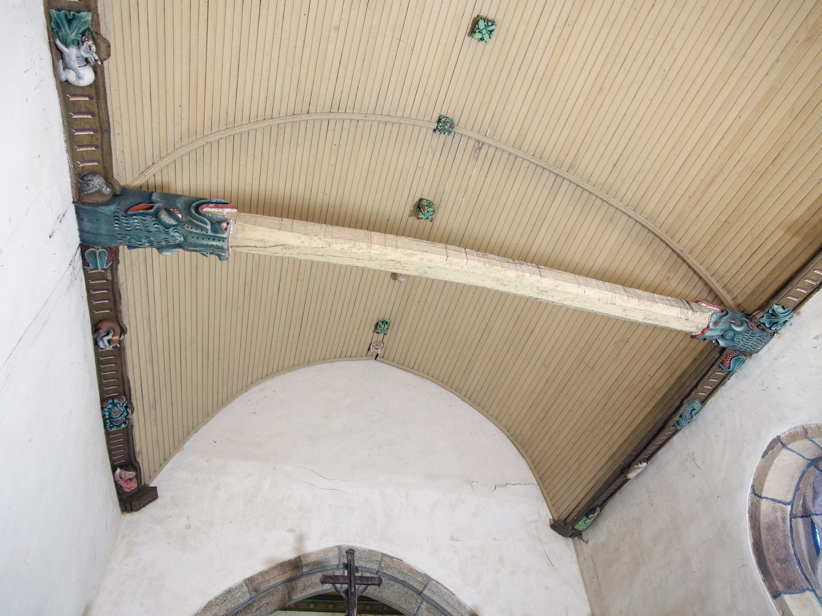 Ploubezre, Runfao : chapelle Saint-Fiacre, charpente lambrissée, engoulants et sablièreImmatriculation