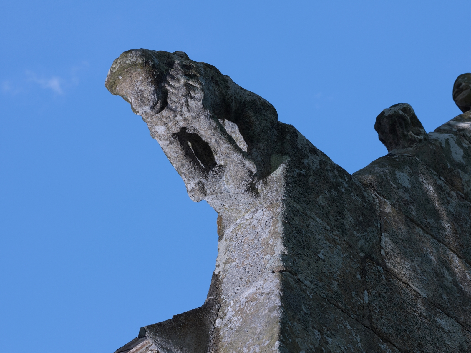 Ploubezre, Runfao : chapelle Saint-Fiacre, crossette ou chevronnière sculptéeImmatriculation