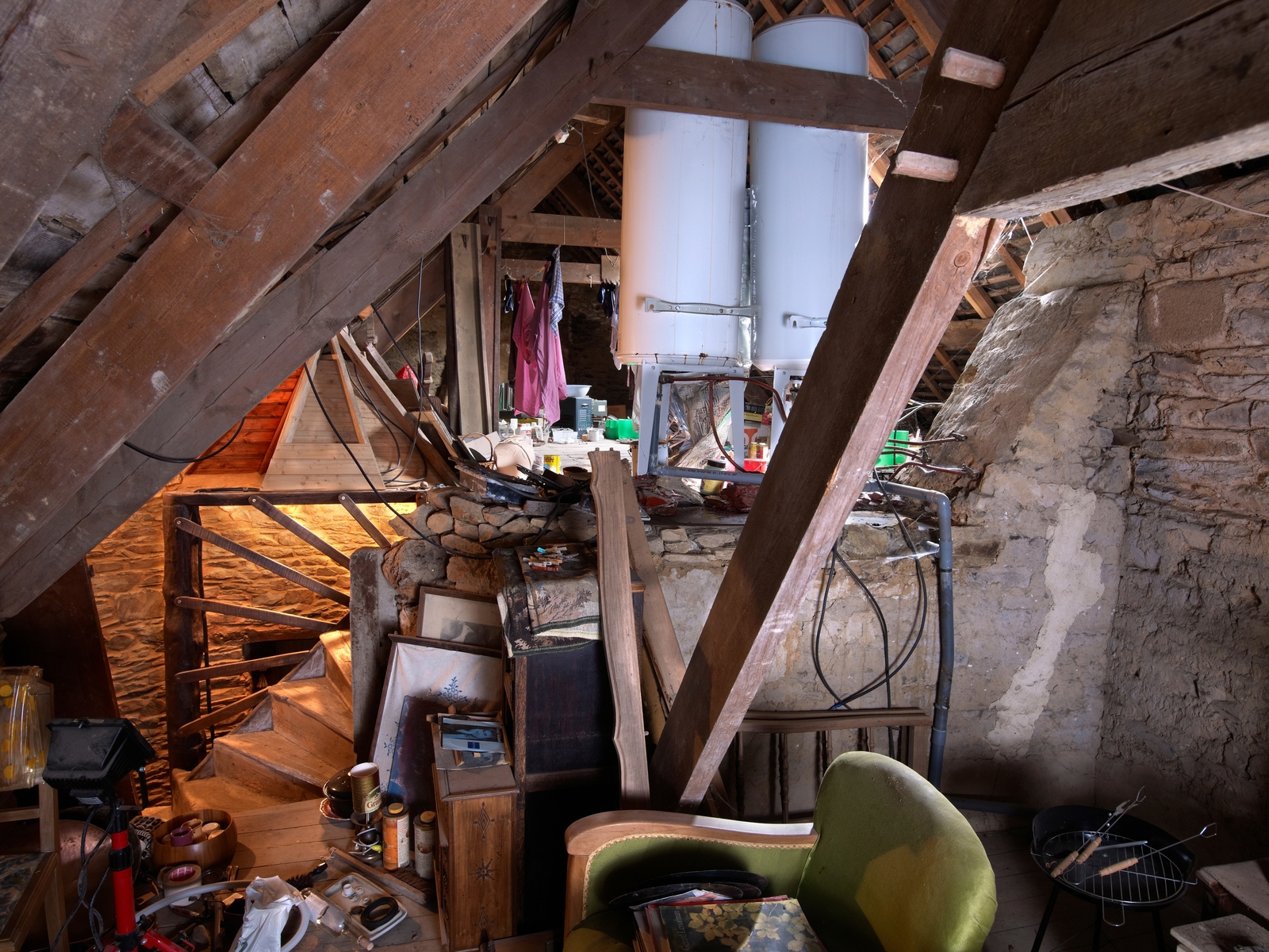 Comble. Mur de refend et arrivée de l'escalierImmatriculation
