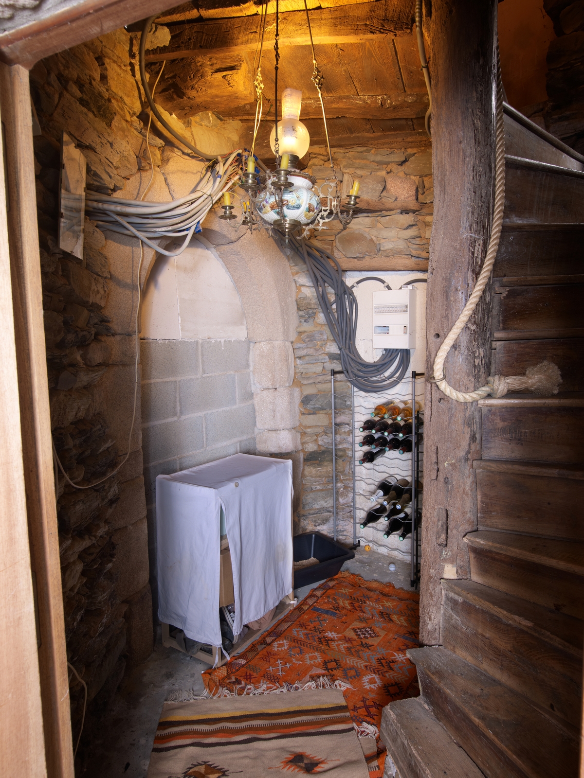 Intérieur de la tour d'escalier. Départ de l'escalier et porte d'accès à la maison voisineImmatriculation