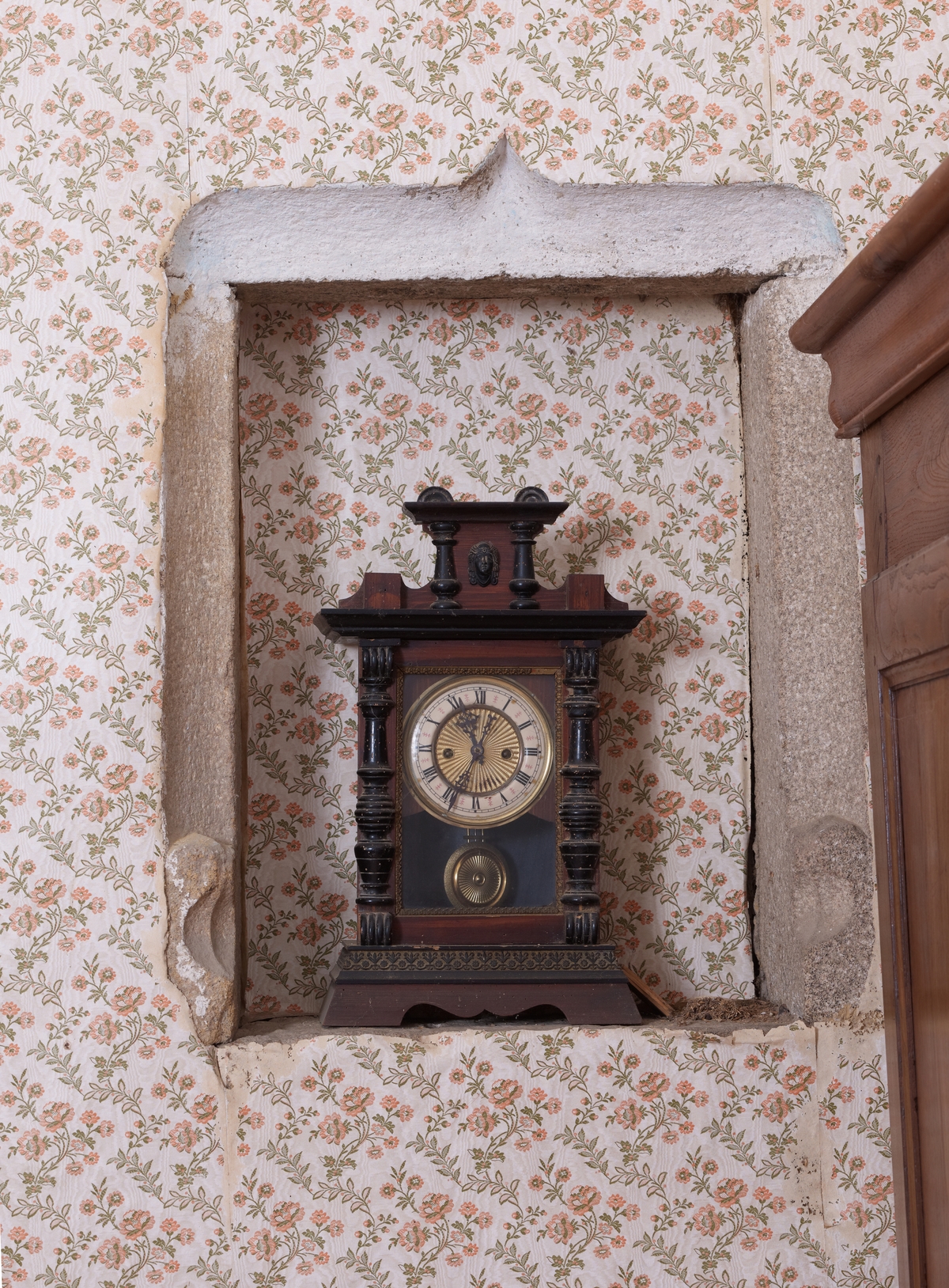 Ploubezre, Le Launay : manoir, extrémité sud, étage, petite baie de type "judas" permettant d'observer ce qui se passait dans la salle haute sous charpente depuis une chambre annexeImmatriculation