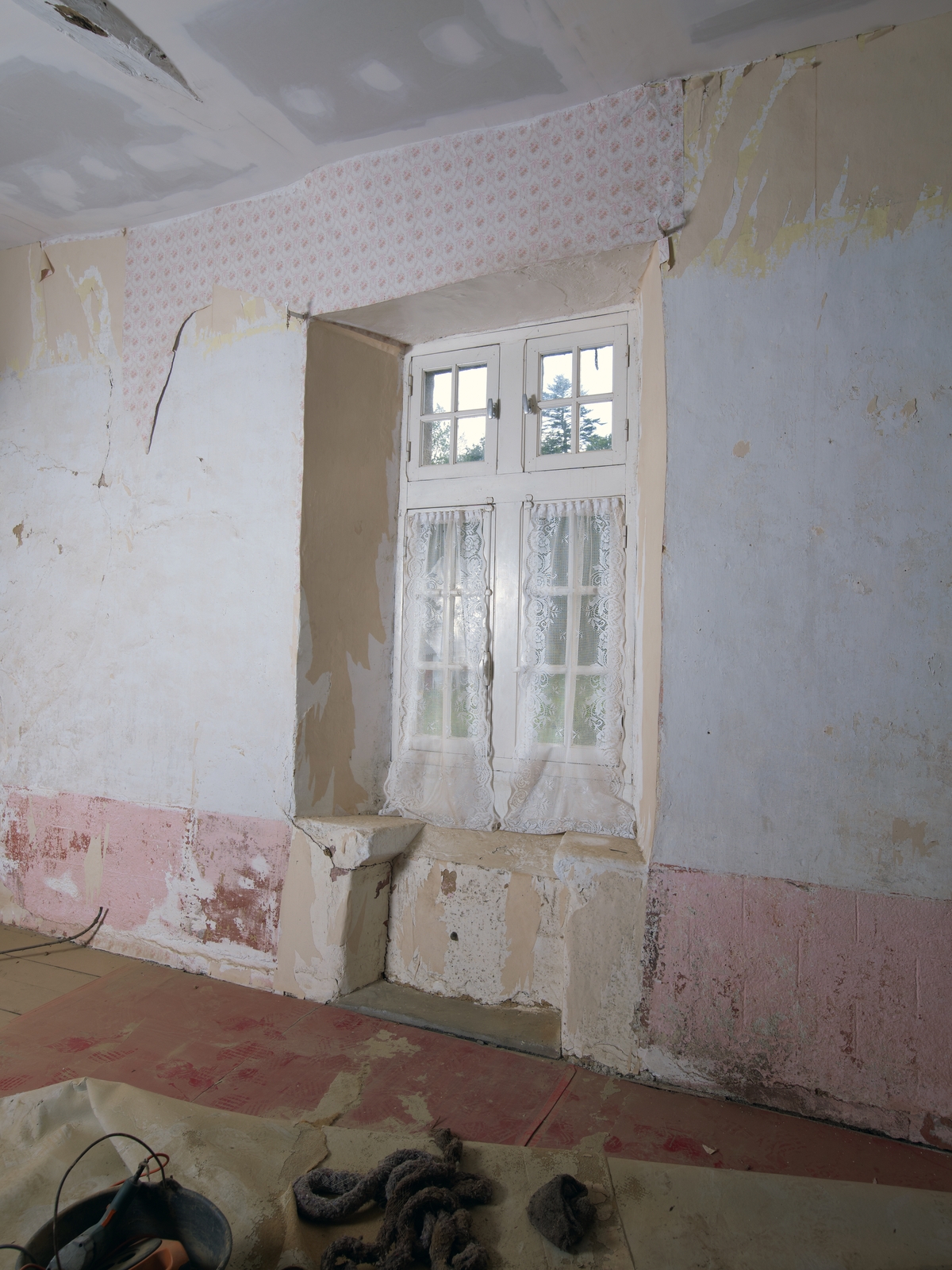 Ploubezre, Le Launay : manoir, extrémité sud, étage, fenêtre à coussièges donnant vers l'ouestImmatriculation