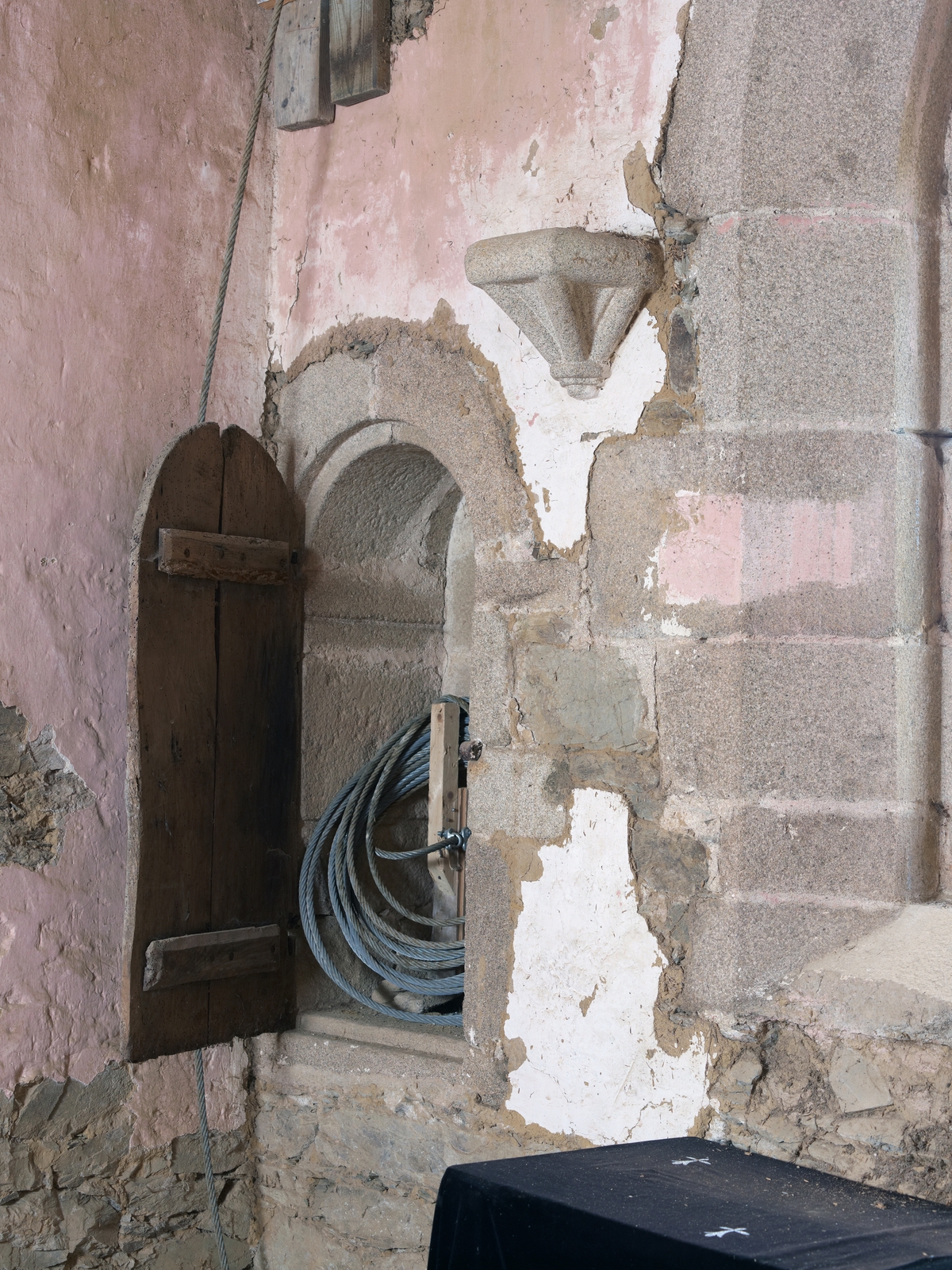 Logis-porte. Premier étage. Chapelle domestique. Détail du sacraire avec son vantail d'origineImmatriculation