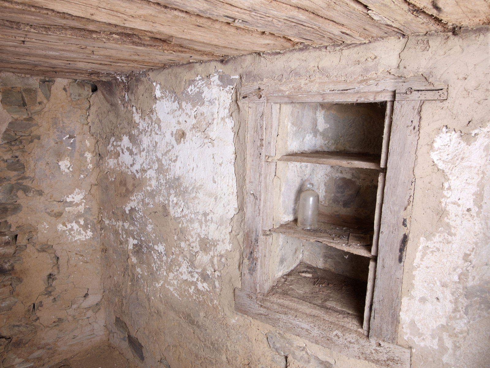 Logis-porte. Premier étage. Salle haute située au nord. Local des archives situé dans le réduit aménagé dans le double pignon nord. Détail du placard muralImmatriculation