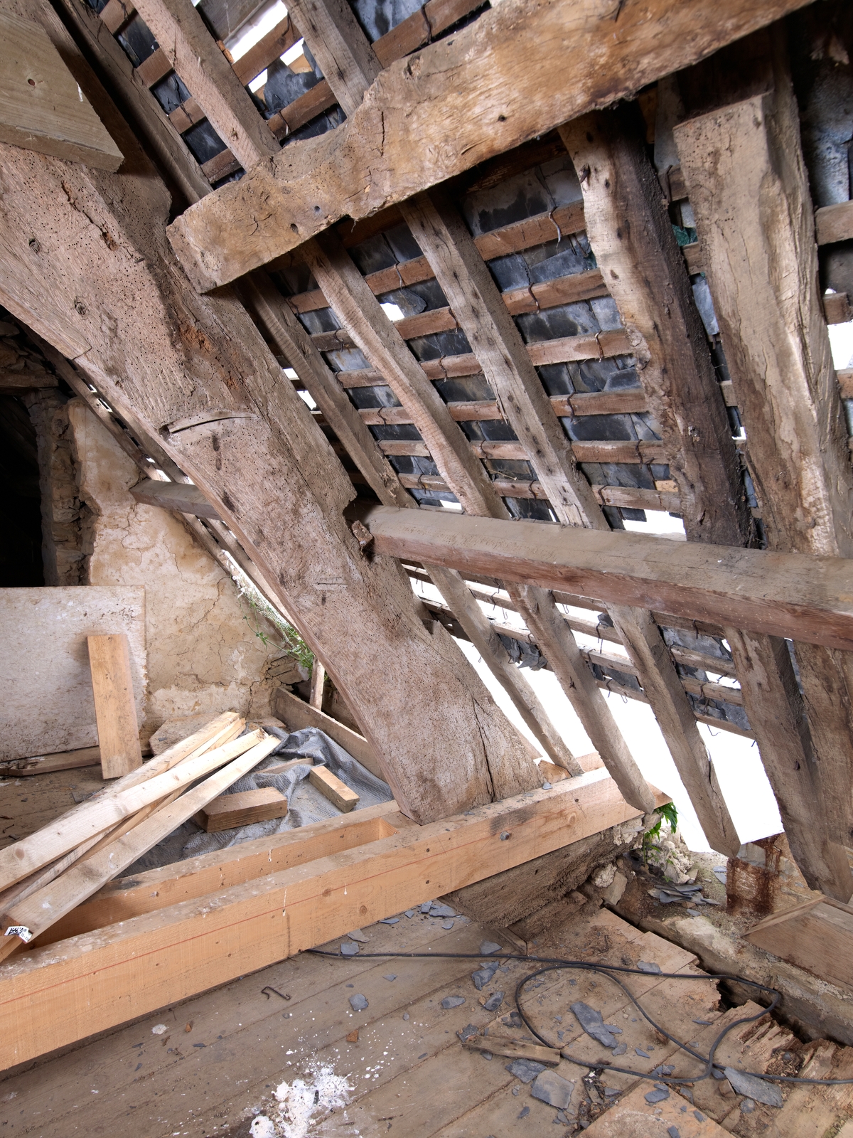 Comble. Charpente. Détail d'un arbalétrier courbeImmatriculation