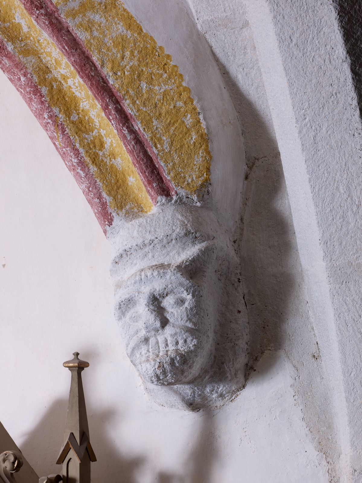 Collatéral nord. Retombée des voûtes. Détail d'un culot sculpté d'une tête mi-humaine mi-animaleImmatriculation