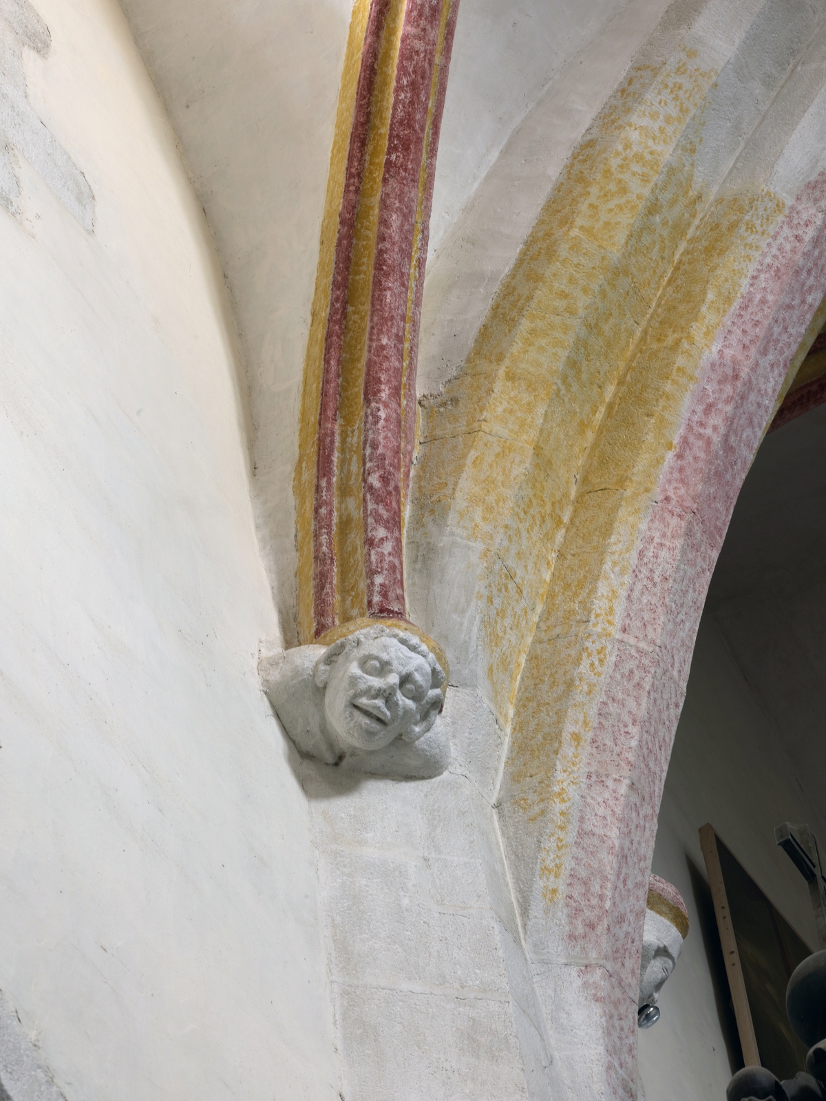 Collatéral nord. Retombée des voûtes. Détail d'un culot sculpté d'un personnage en busteImmatriculation