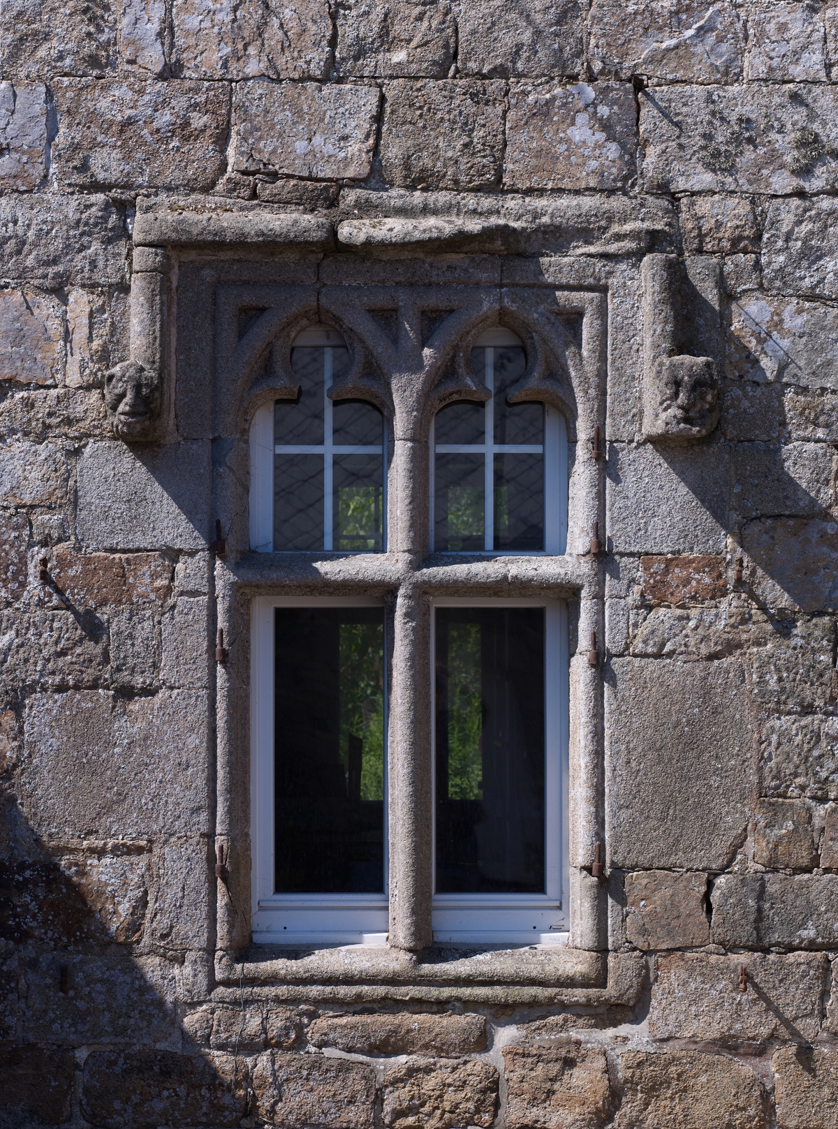 Ploubezre, Le Launay : manoir, élévation antérieure orientée vers le nord-est, vue de détail d'une baie à arcs trilobés jumelésImmatriculation