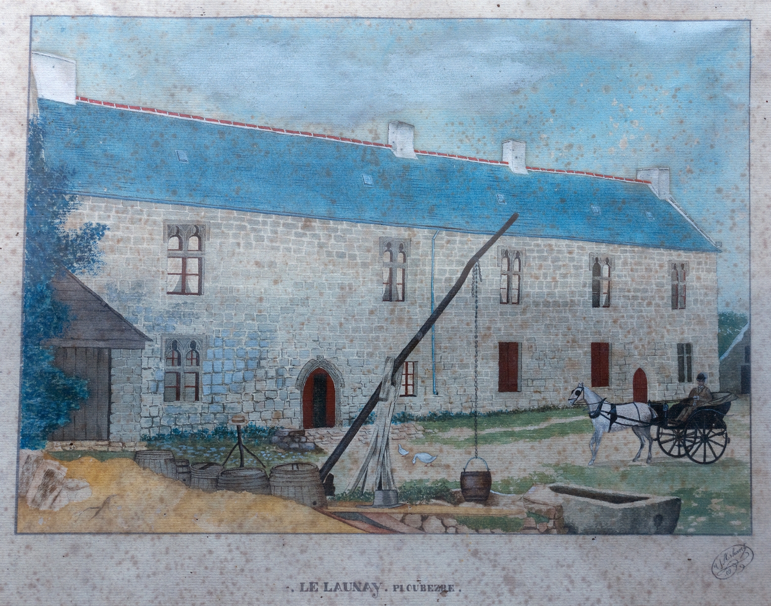 Ploubezre, Le Launay : manoir, dessin (collection particulière). Au premier plan : puits à balancierImmatriculation