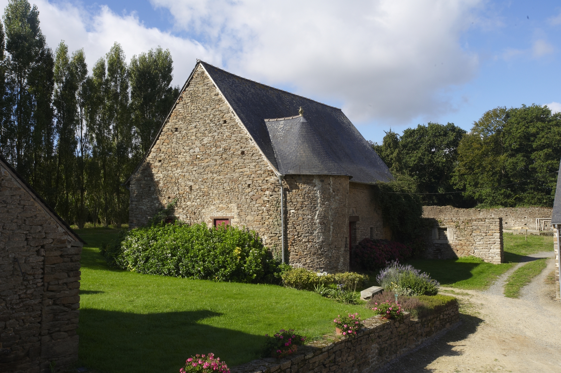 La grange et sa tour d'escalier, vue de la cour.Immatriculation