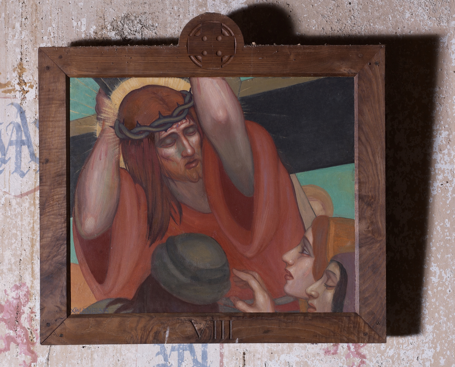 Trémel, le bourg : église paroissiale Notre-Dame, vue intérieure, Chemin de Croix (VIII : "Jésus rencontre les femmes de Jérusalem qui pleurent"), œuvre de Xavier de Langlais (1935)Immatriculation