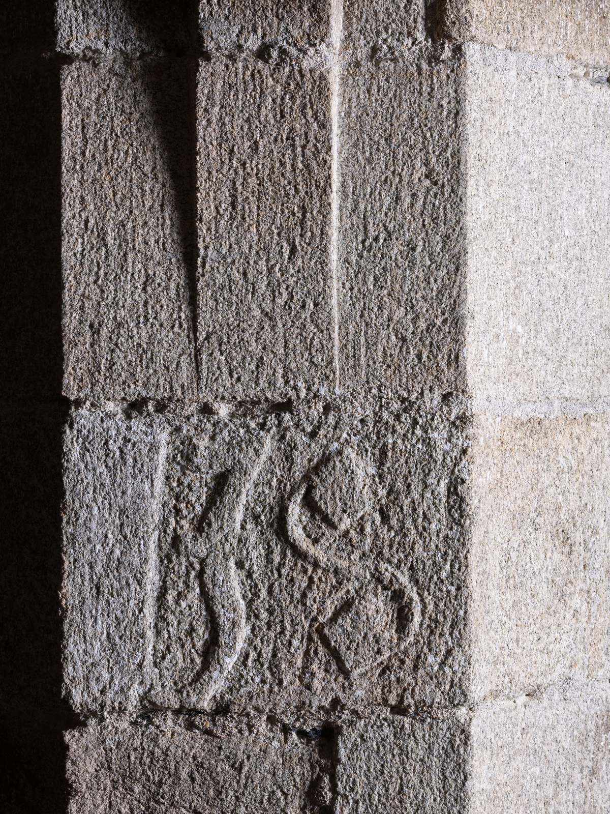 Trémel, le bourg : église paroissiale Notre-Dame, vue intérieure, pilier, détail de l'inscriptionImmatriculation