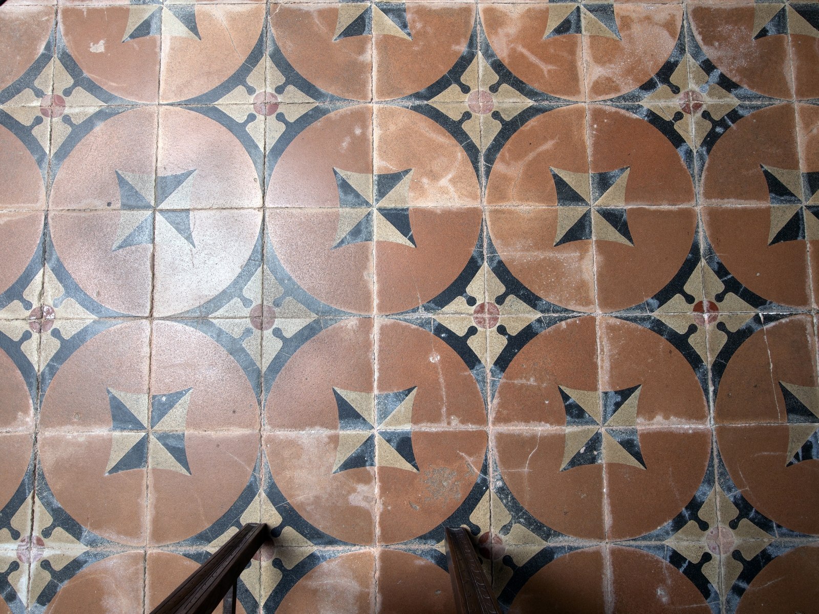 Logis principal. Hall d'entrée. Détail des carreaux de cimentImmatriculation