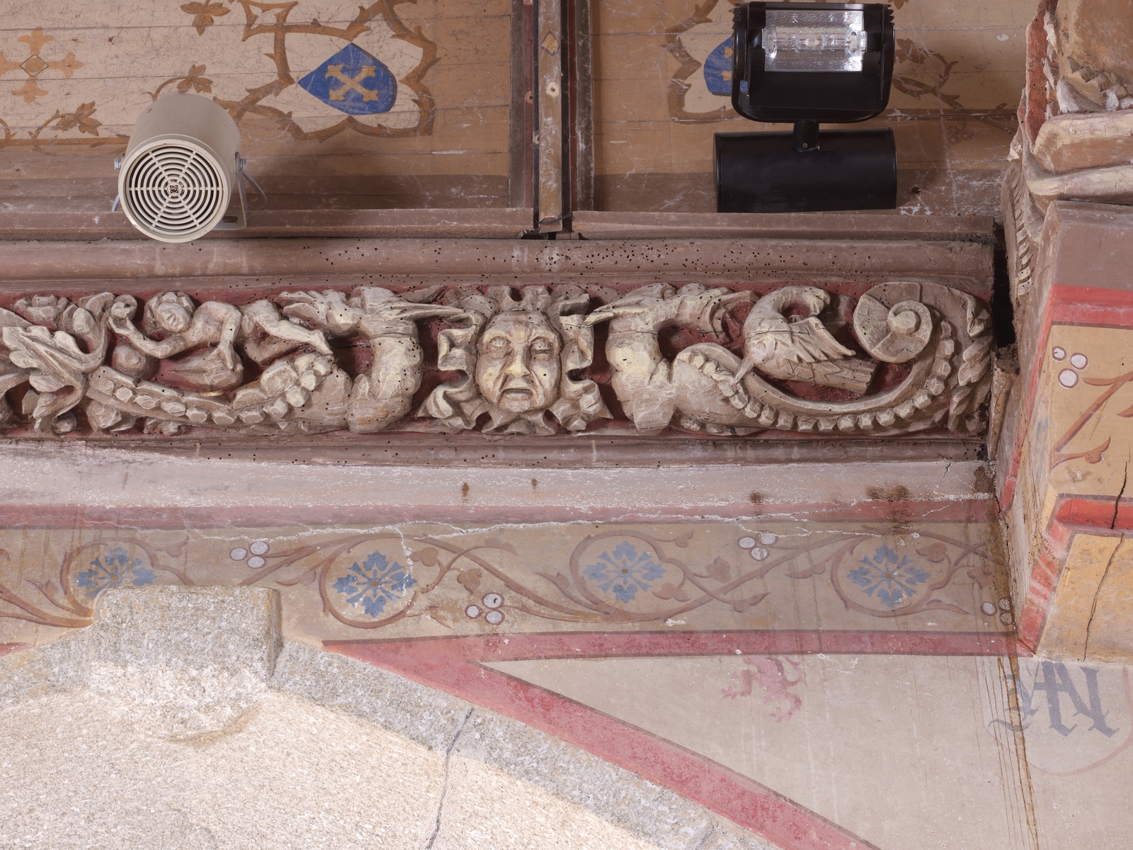 Trémel : église paroissiale Notre-Dame, vue intérieure, sablière sculptéeImmatriculation