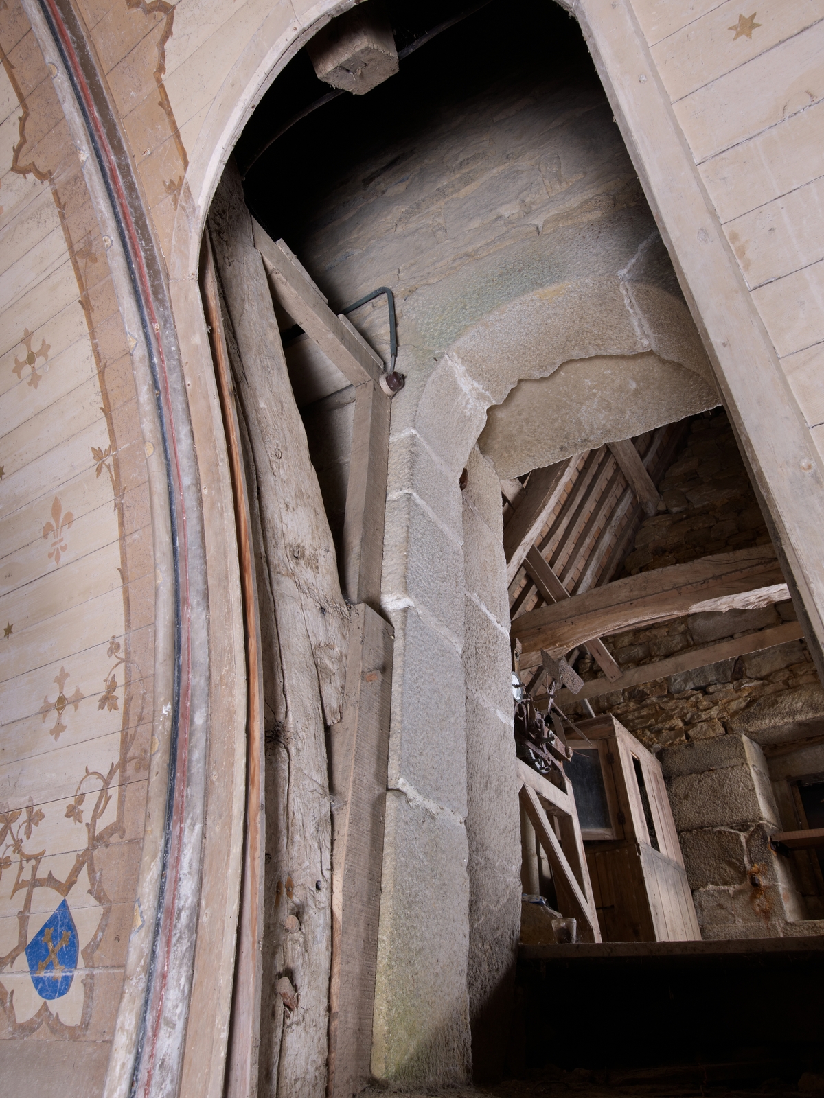 Trémel : église paroissiale Notre-Dame, vue intérieure, accès à la pièce située au-dessus du porche sudImmatriculation