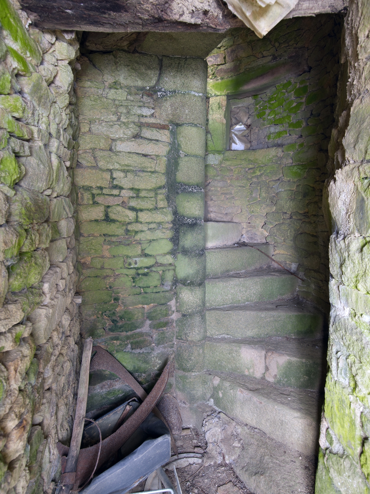 Trémel : manoir de Kermerzit, vue intérieure, tour nord, escalier en visImmatriculation