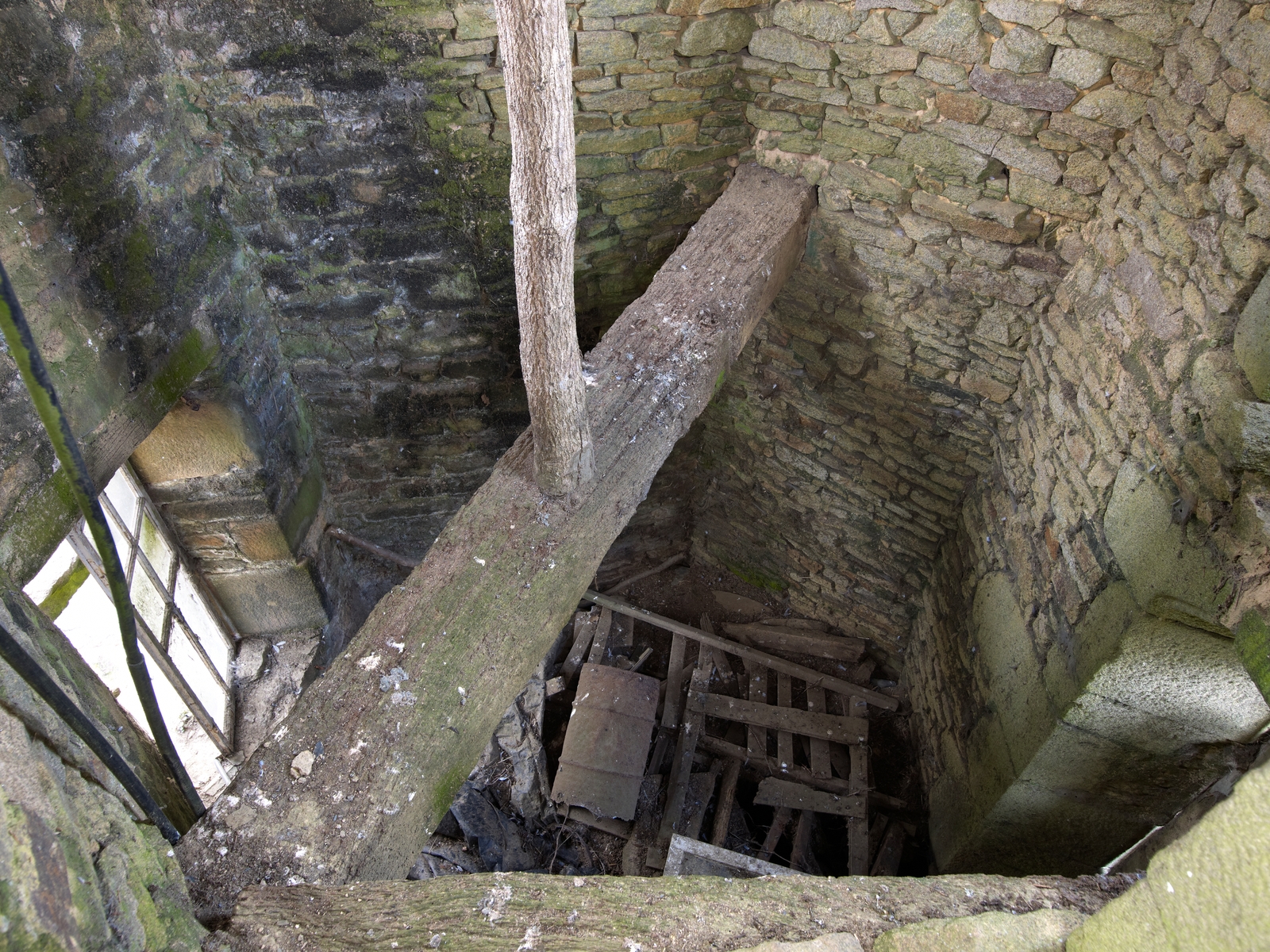 Trémel : manoir de Kermerzit, vue intérieure, tour nord de plan hexagonalImmatriculation