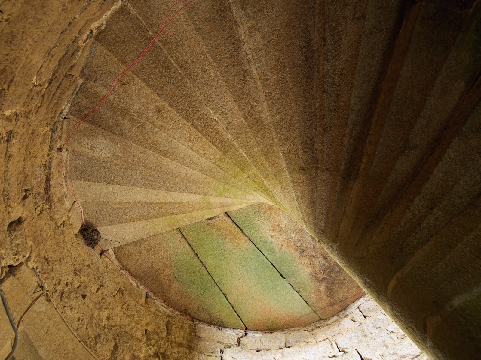 Trémel : manoir haut de Kermerzit, vue intérieur de l'escalier en vis, détail des dalles rayonnantesImmatriculation