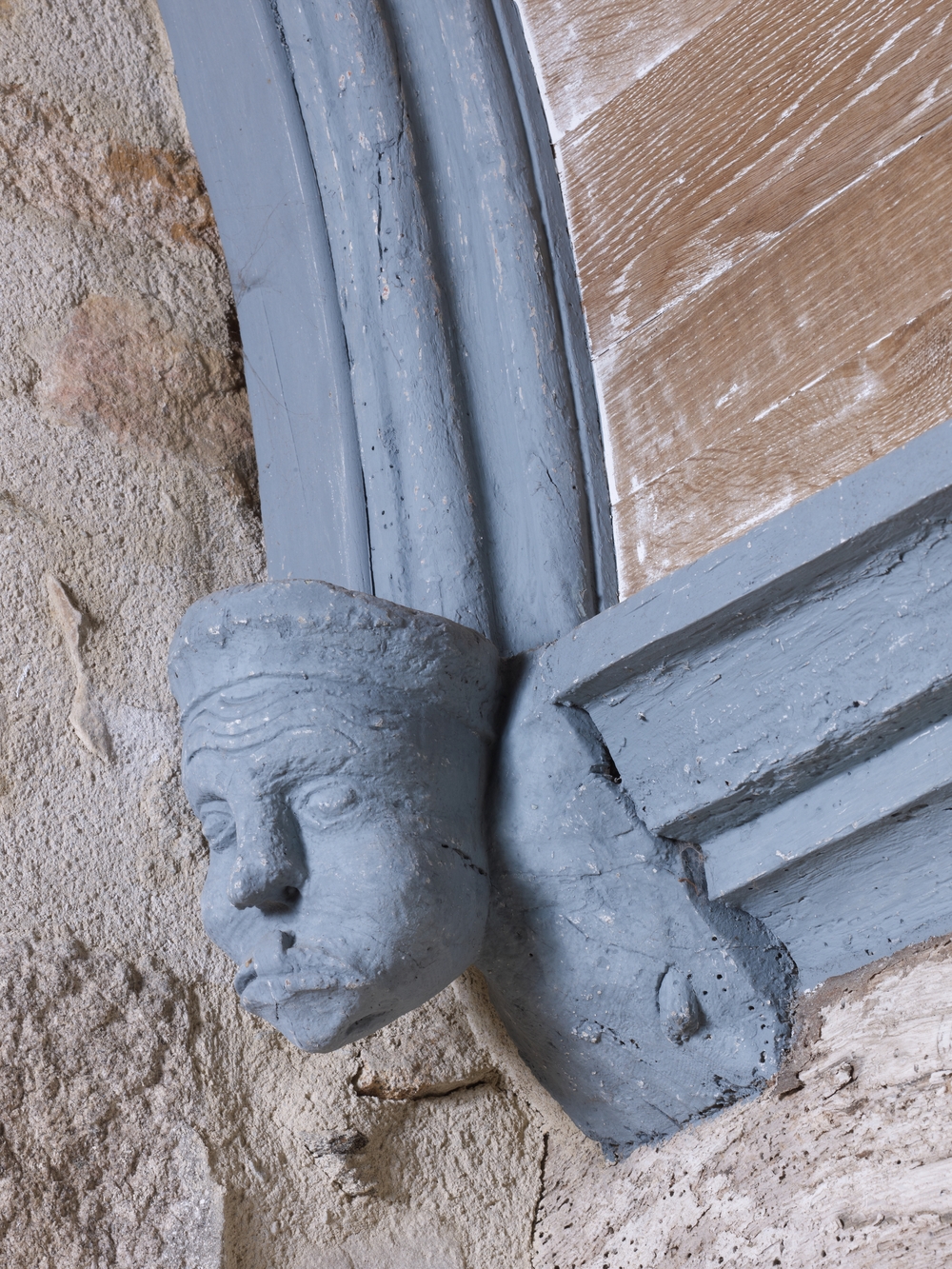 Plufur, le bourg : église paroissiale Saint-Florent, porche sud, vue de détail de l'ornementationImmatriculation