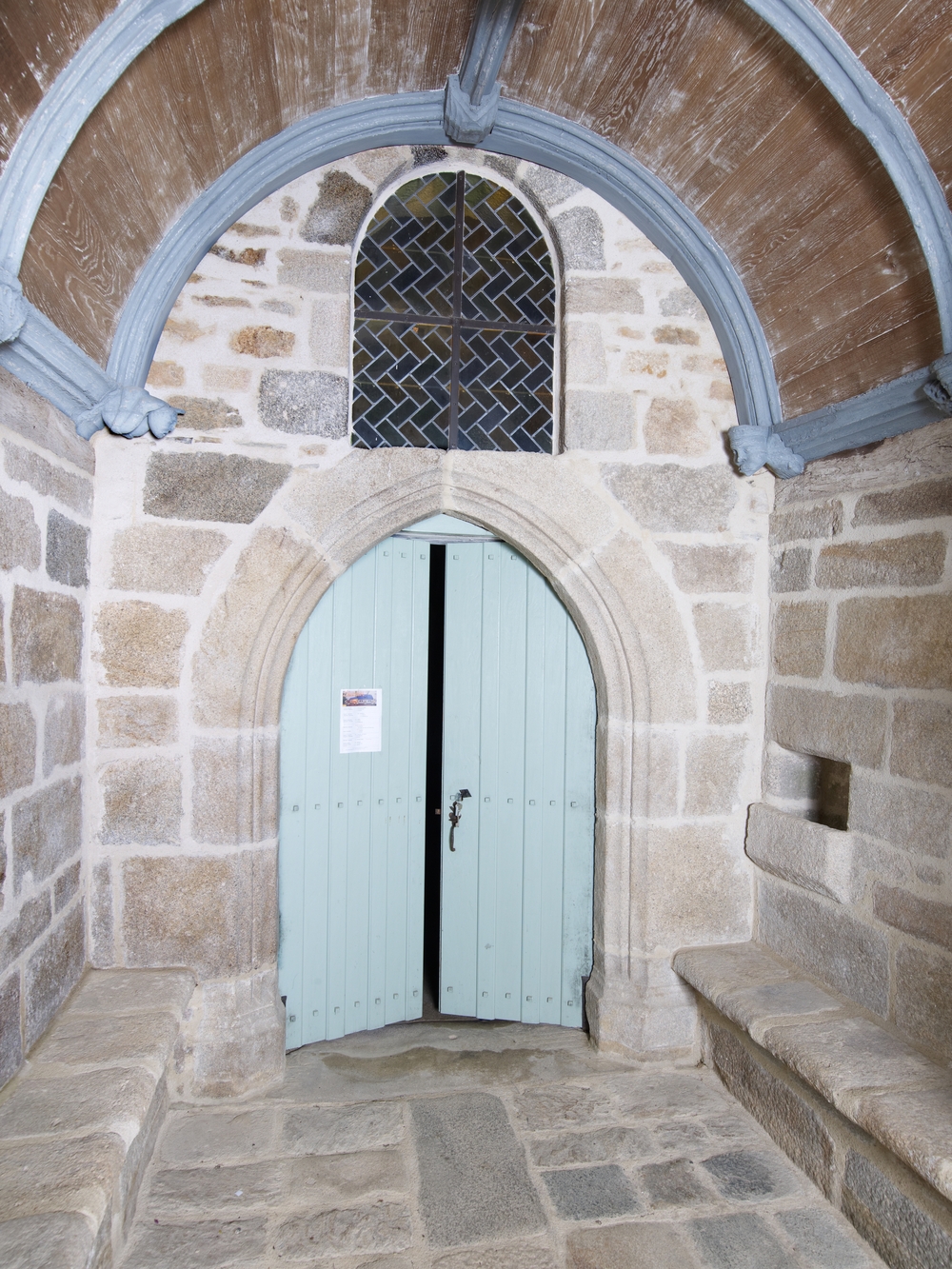 Plufur, le bourg : église paroissiale Saint-Florent, porche sud, vue intérieureImmatriculation