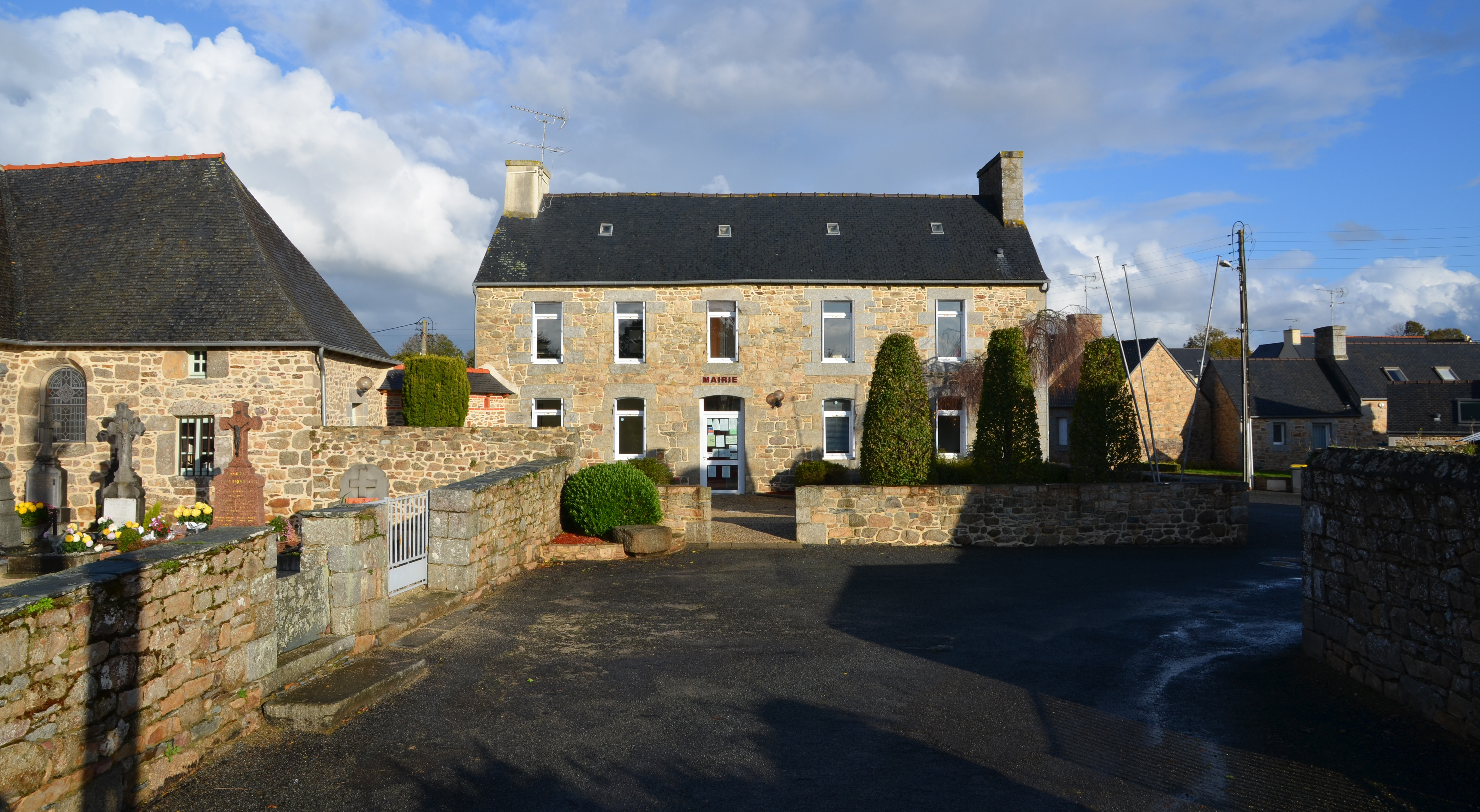 Mantallot, le bourg : ancien presbytère aujourd'hui mairie, vue de situation depuis le sud. Il porte le millésime 1773.Immatriculation