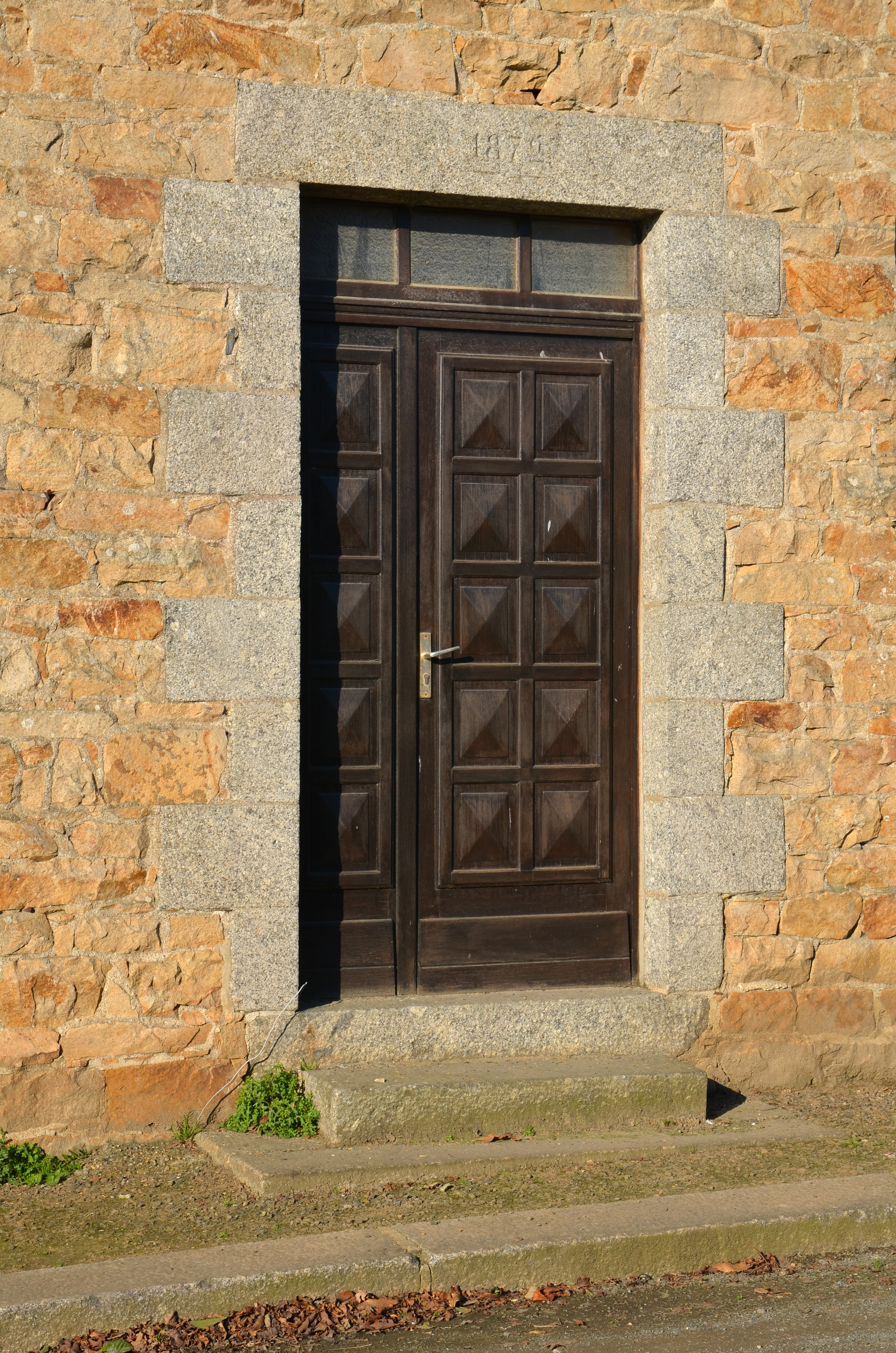 Mantallot, le bourg : logis de ferme, élévation antérieure, détail de la porte. Le logis est daté par millésime de 1872Immatriculation