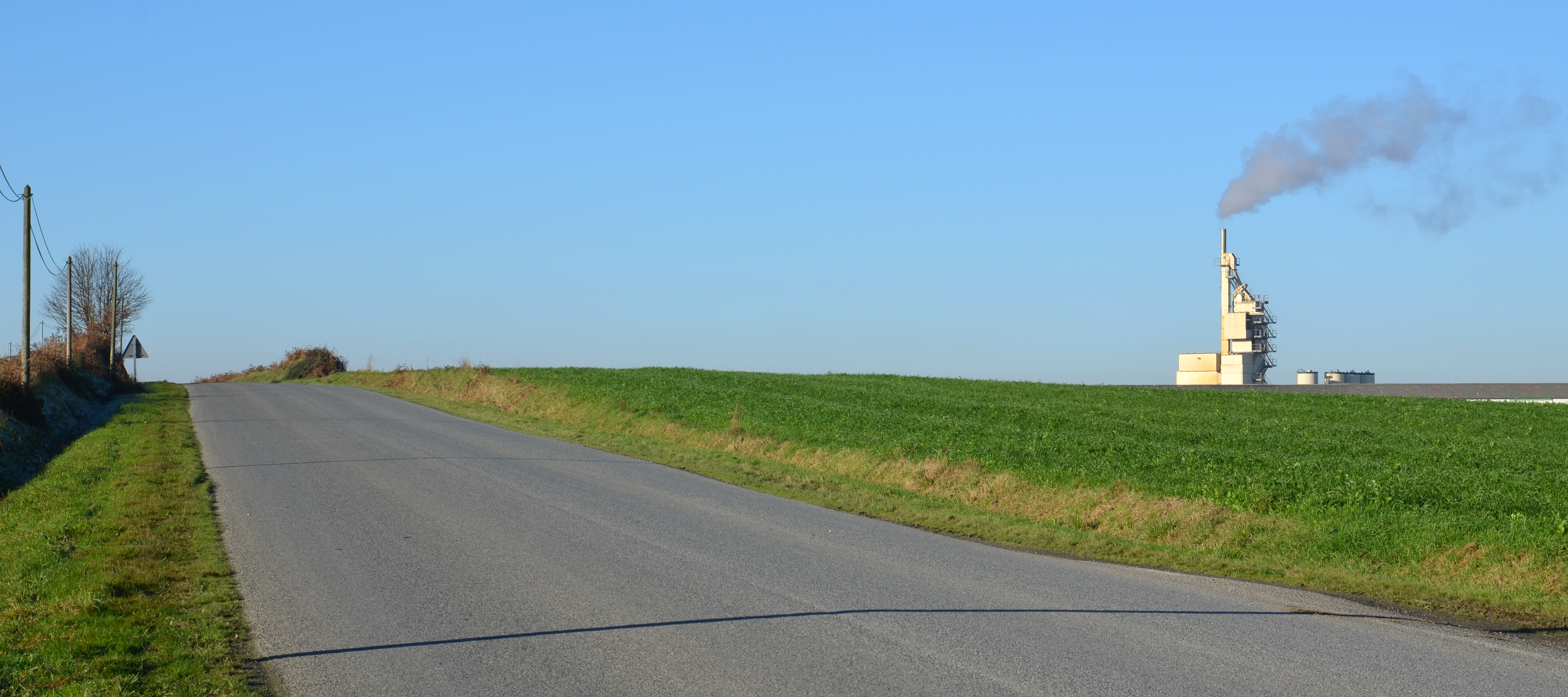 Mantallot : le paysage vers l'ouest depuis le nord de Bertu. On distingue la centrale à goudron du carrefour des Quatre VentsImmatriculation