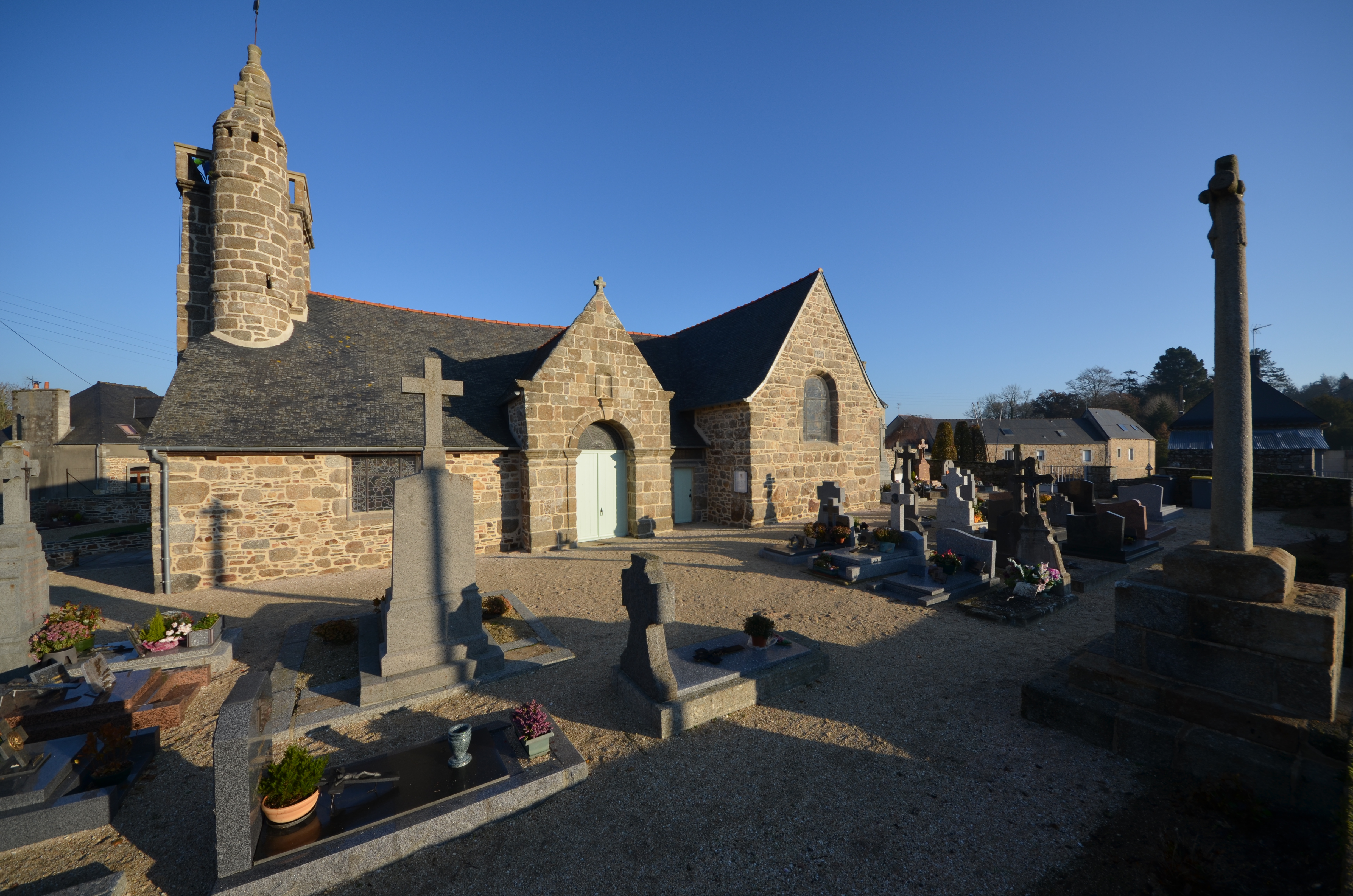 Mantallot, le bourg : église paroissiale Saint Médéric et le cimetière, vue générale depuis le sud-ouestImmatriculation