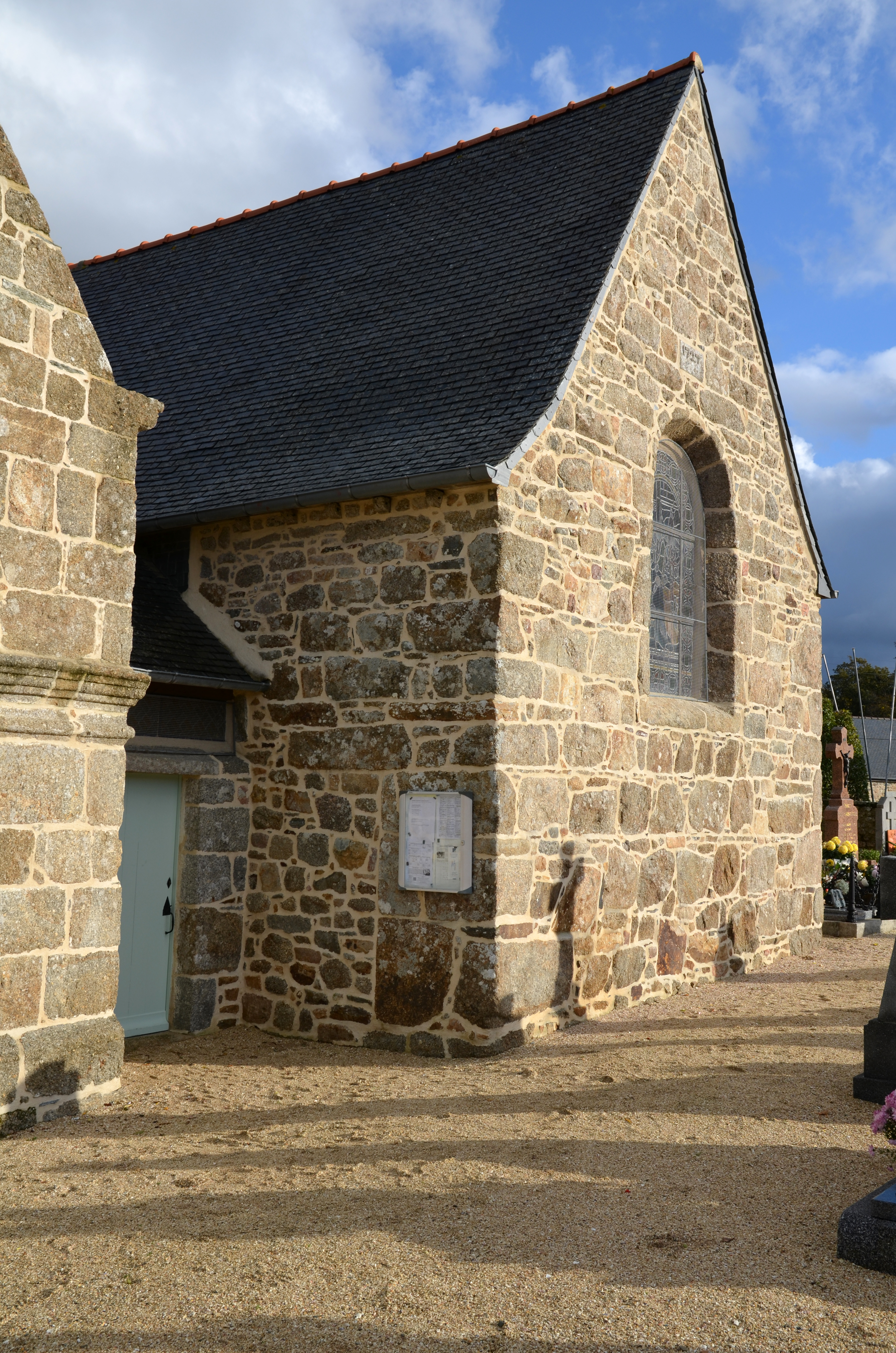 Mantallot, le bourg : église paroissiale Saint Médéric, transept sud. Une porte a été murée dans le mur sudImmatriculation