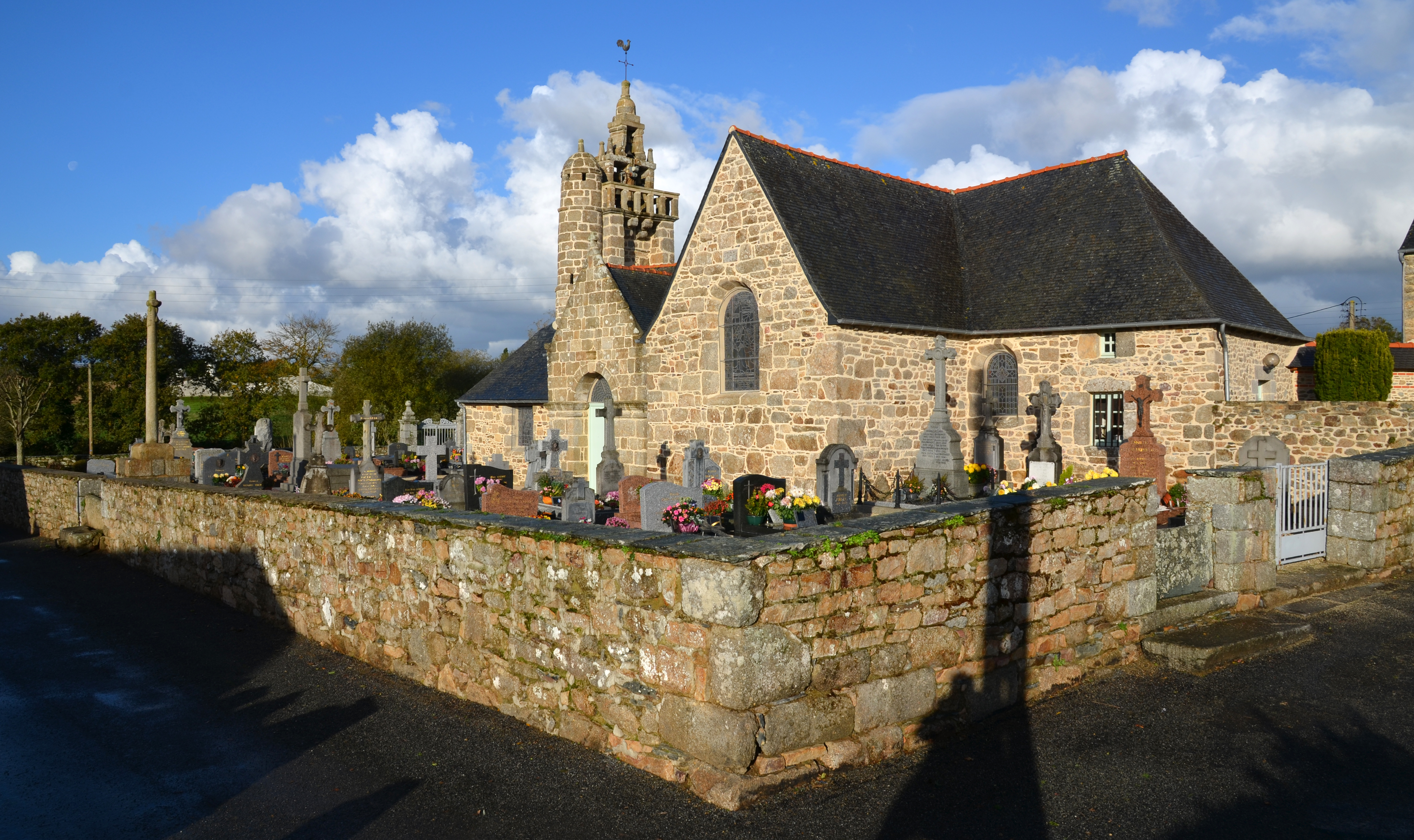 Mantallot, le bourg : église paroissiale Saint Médéric et cimetière, vue générale depuis le sud-estImmatriculation