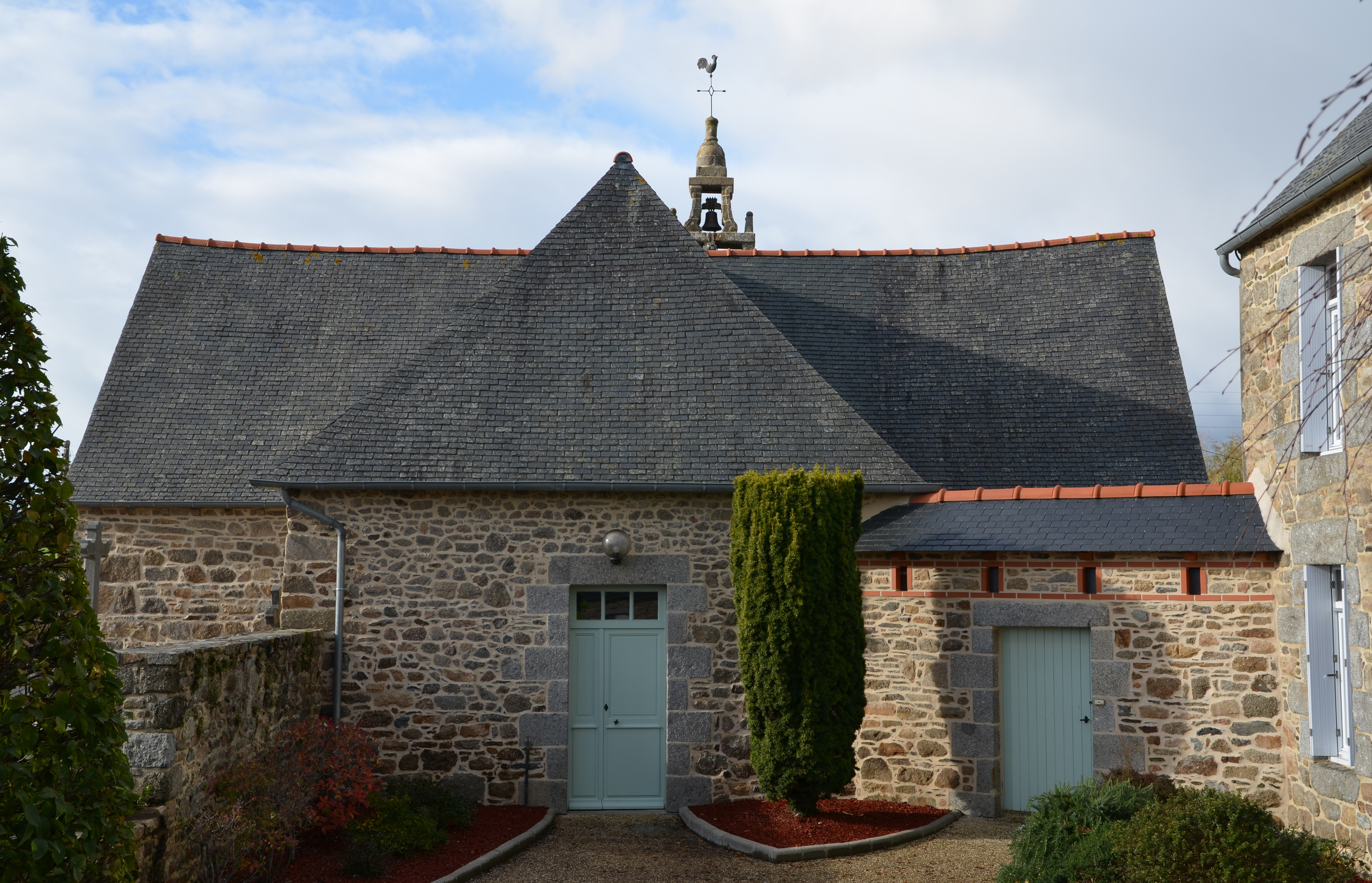 Mantallot, le bourg : église paroissiale Saint Médéric, chevet et sacristie, vue générale depuis l'estImmatriculation