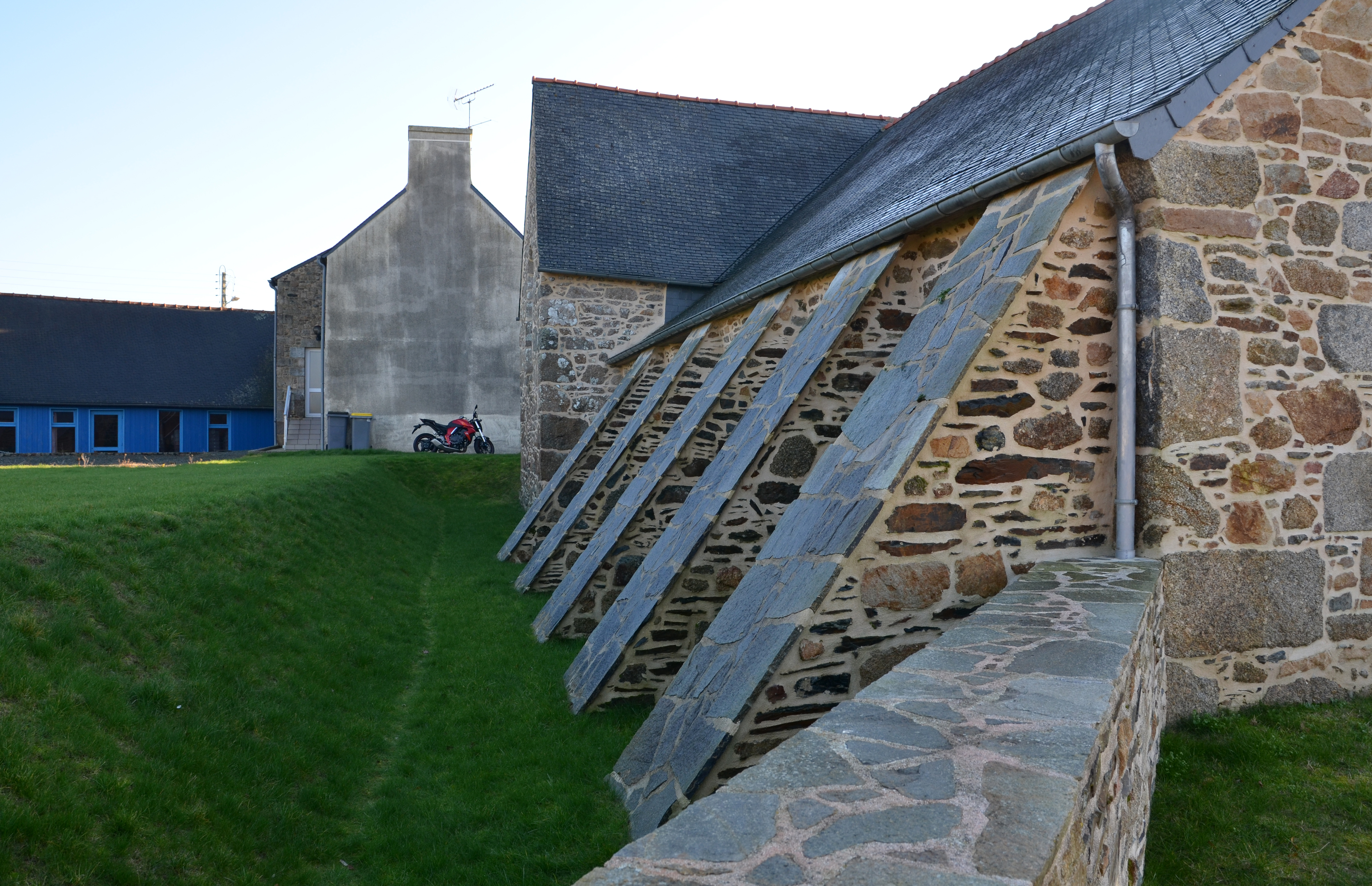 Mantallot, le bourg : église paroissiale Saint Médéric, contreforts et transept nordImmatriculation