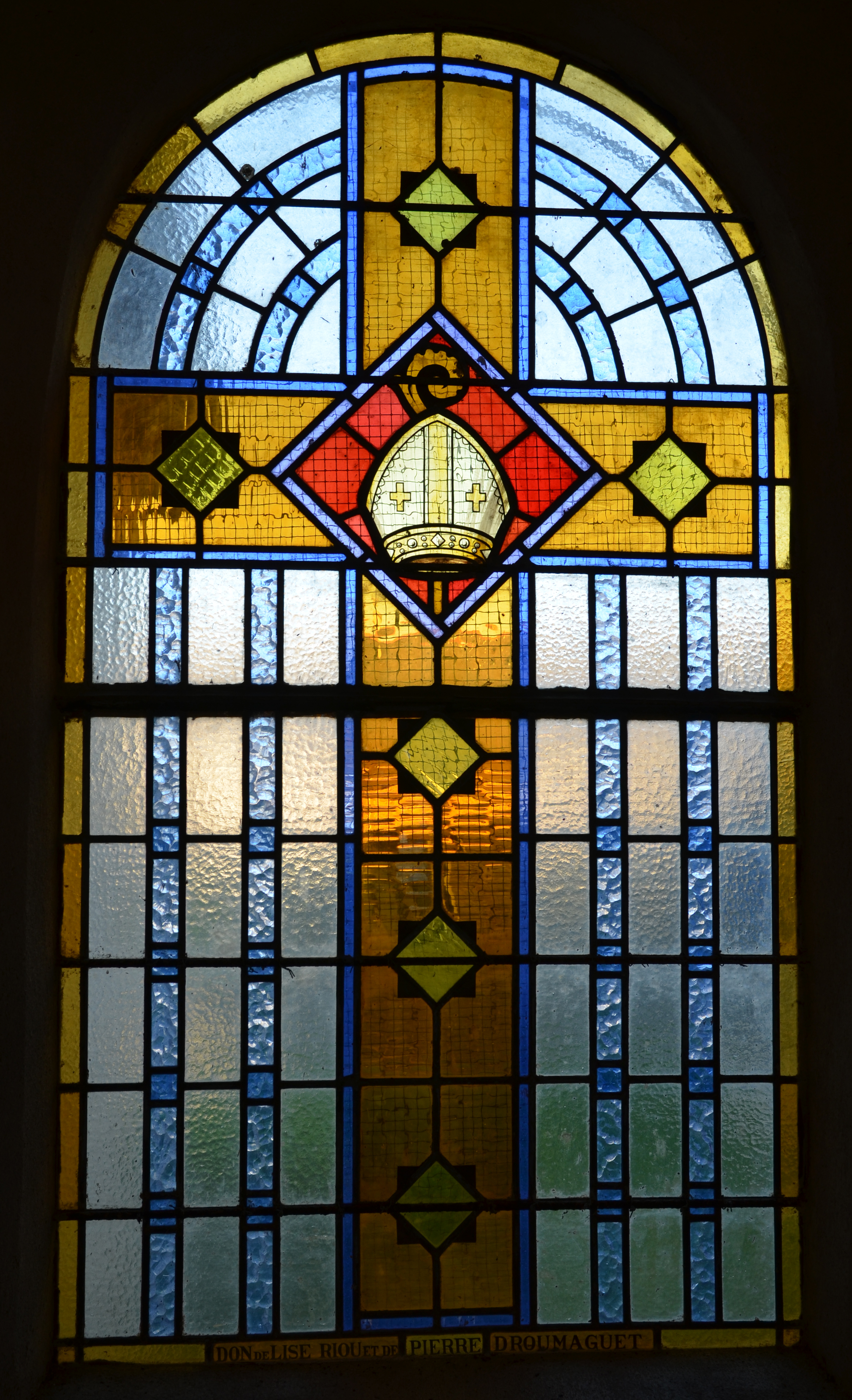 Mantallot, le bourg : église paroissiale Saint Médéric, vue intérieure, vitrailImmatriculation